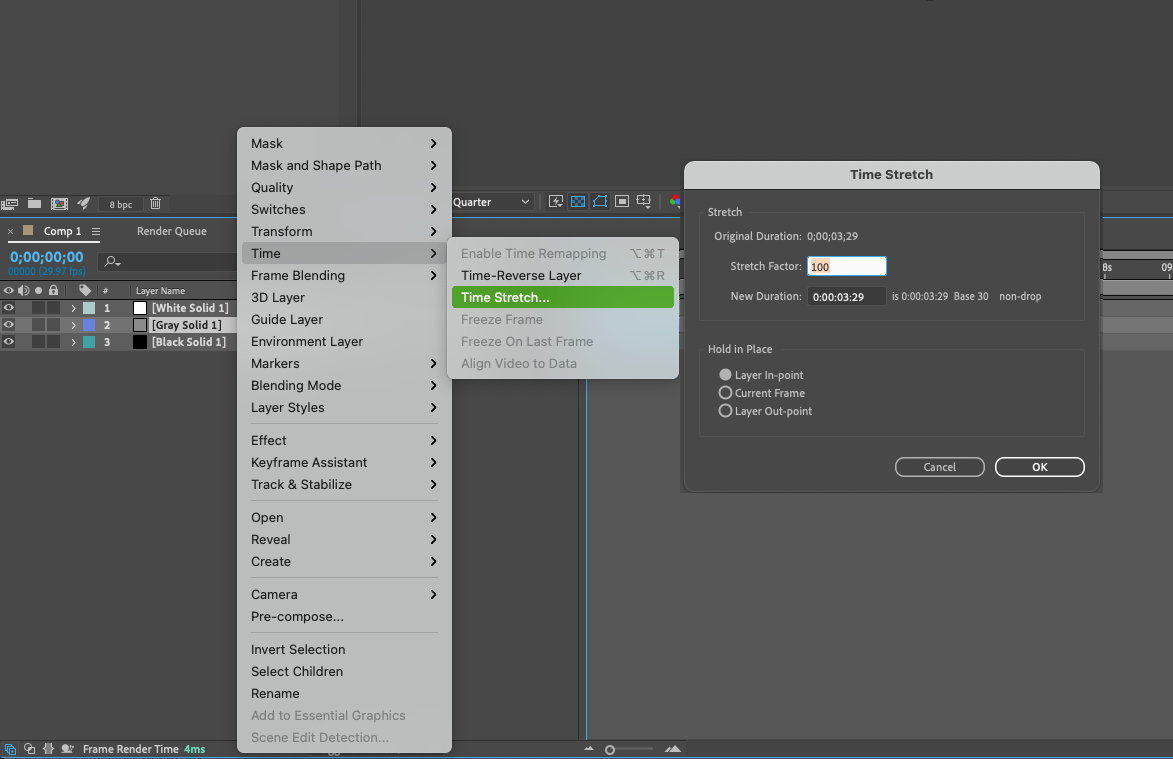 Time Stretch is a powerful feature in After Effects that enables you to change the speed and duration of your footage or compositions. To use this method, select the layer or composition you wish to extend, right-click, and navigate to “Time” > “Time Stretch.” Increase the percentage value to extend the duration. This technique is especially useful when you want to slow down or speed up specific segments of your timeline while retaining the overall length.