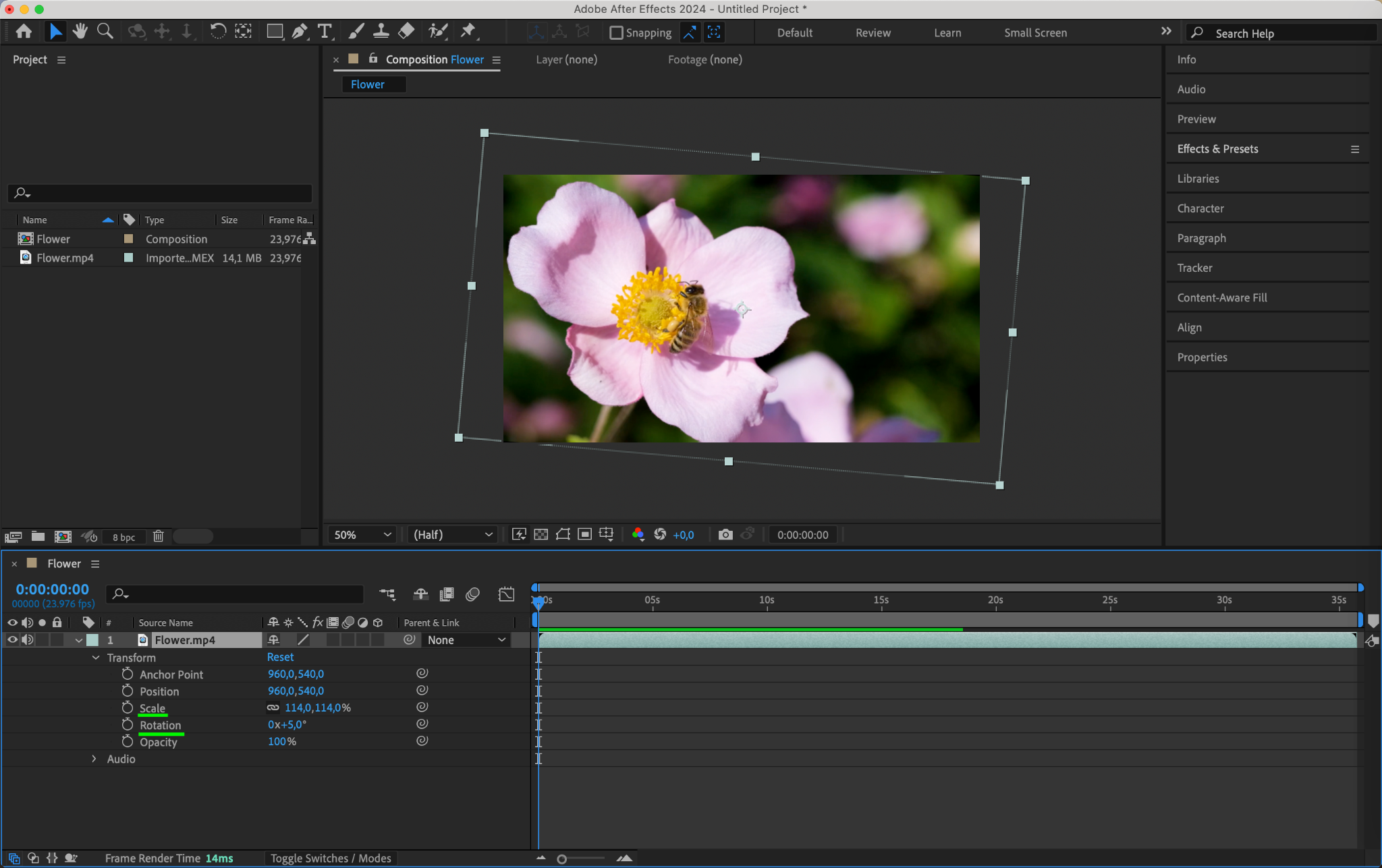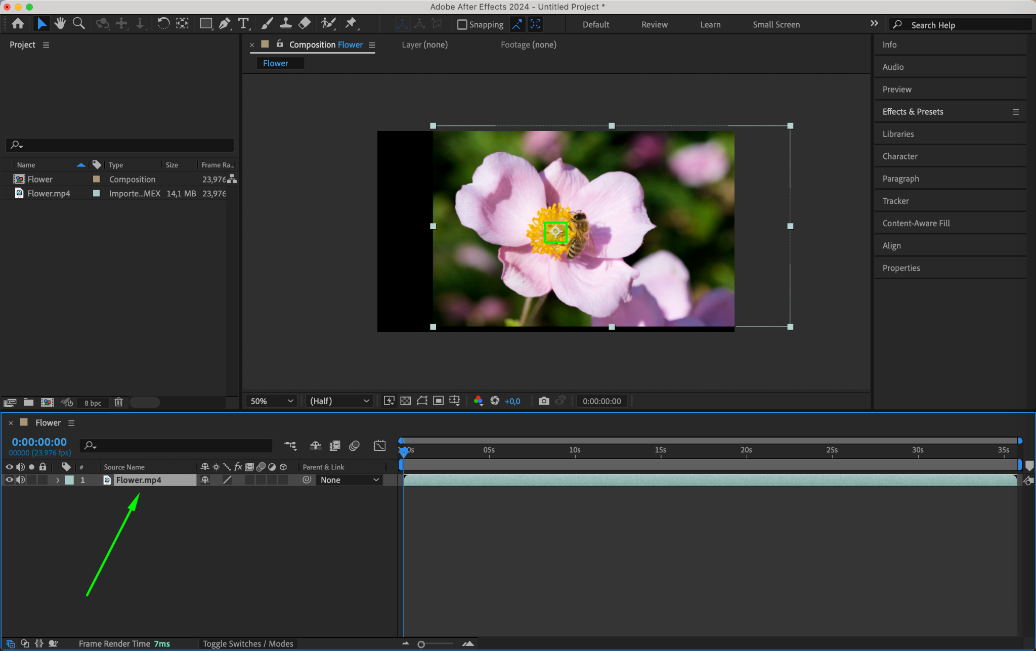 To begin, select the layer you want to adjust in the timeline or composition panel.