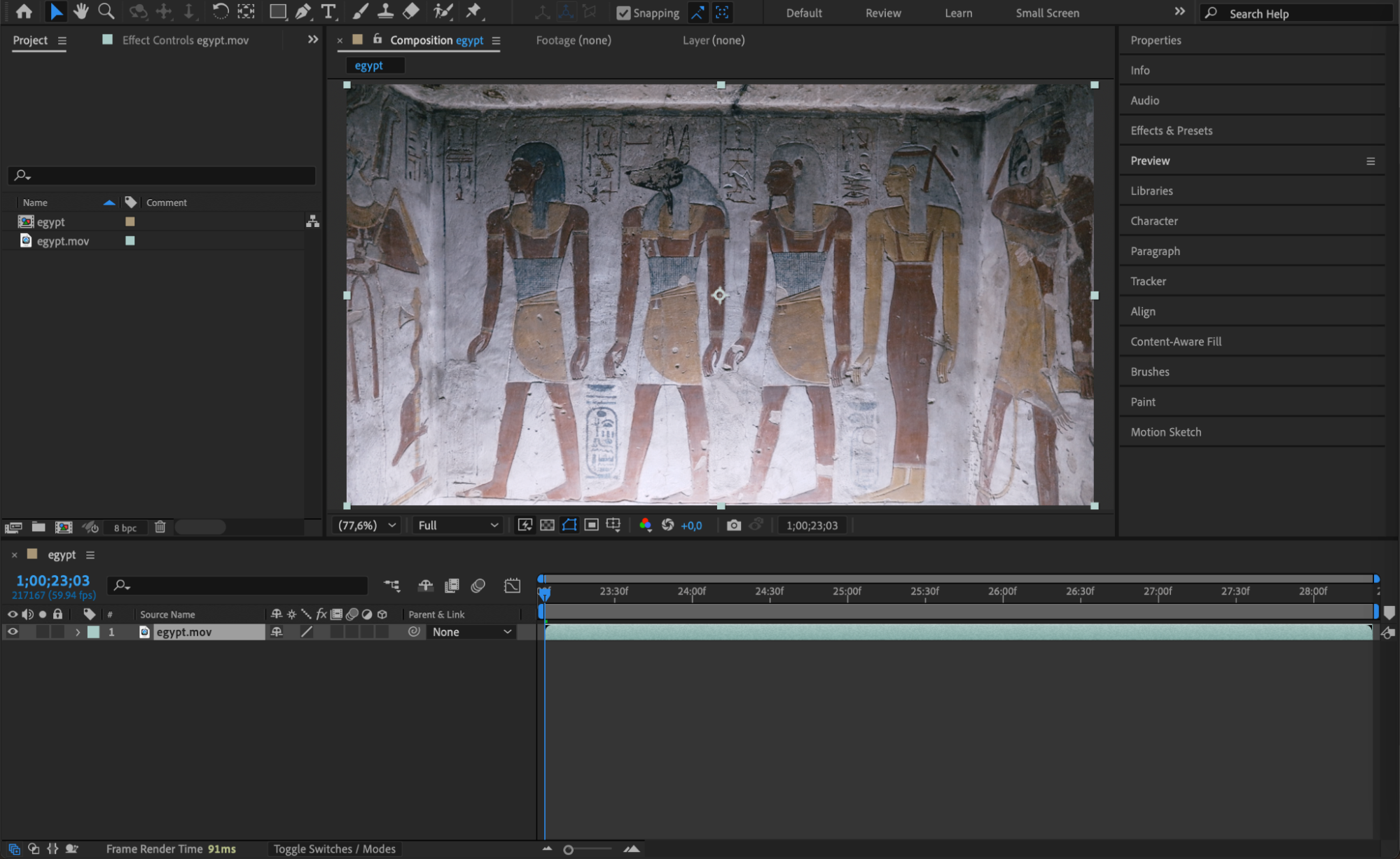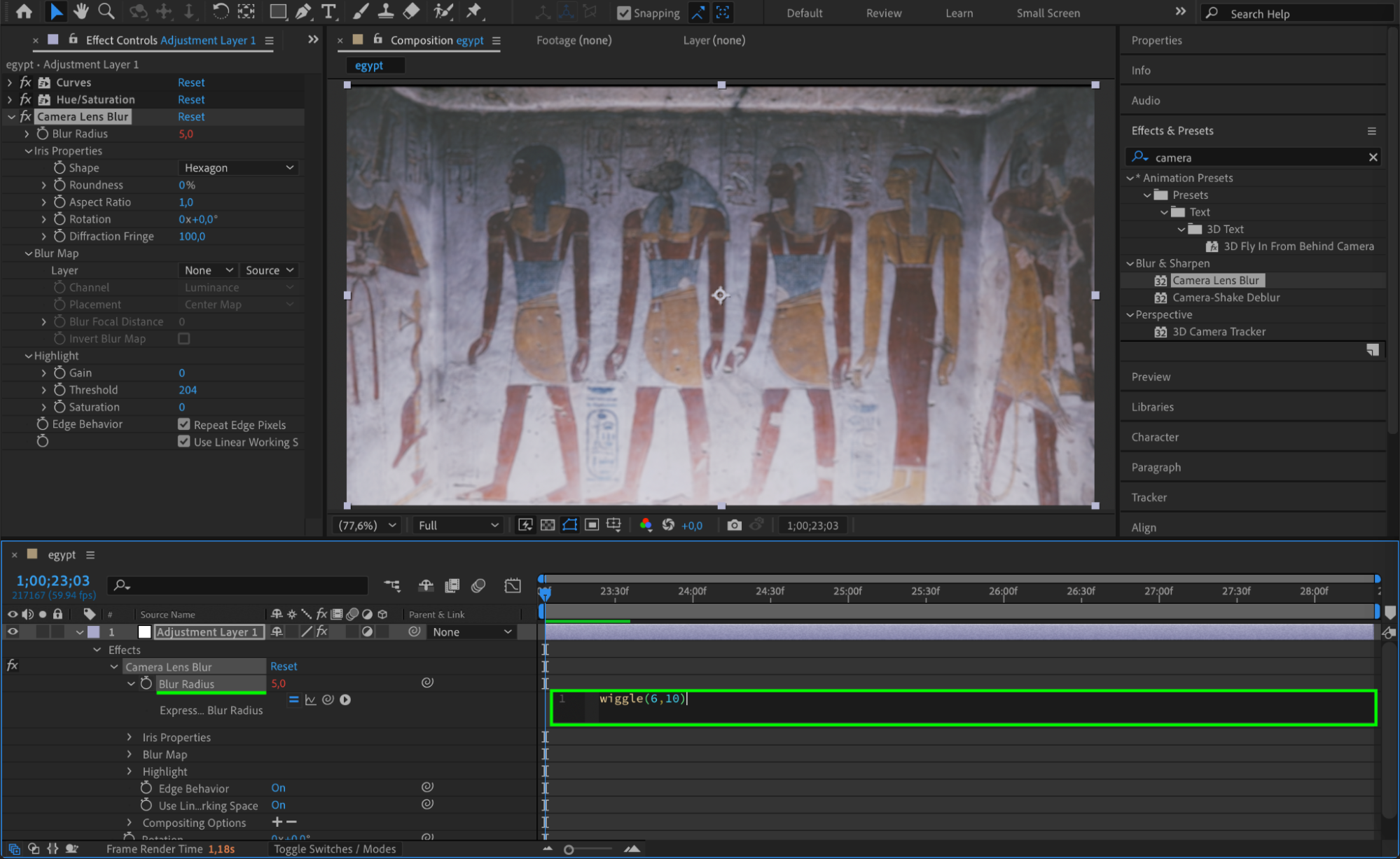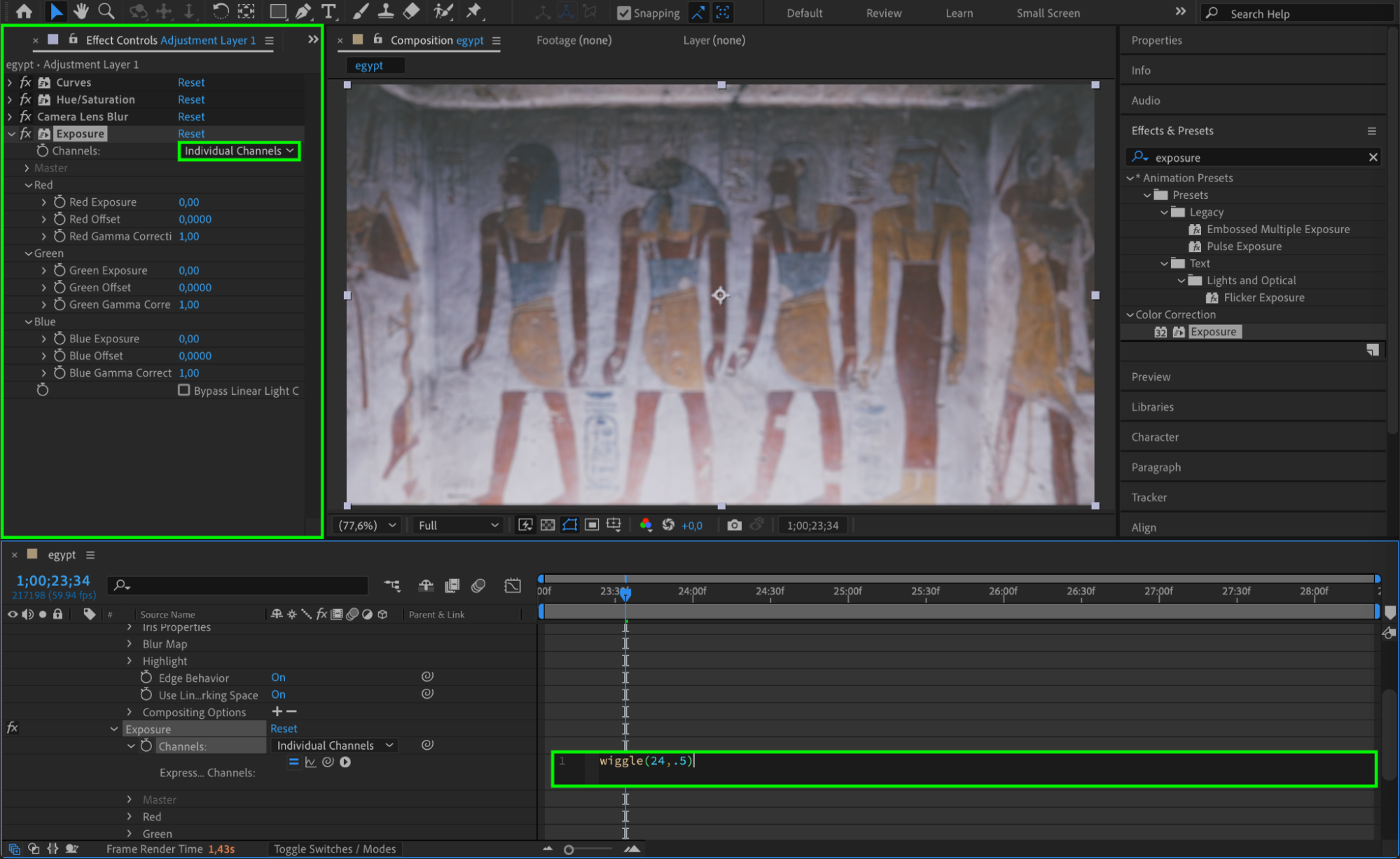 Press Spacebar to preview your animation. If the vintage look is as desired, go to Composition > Add to Render Queue and export your final video.