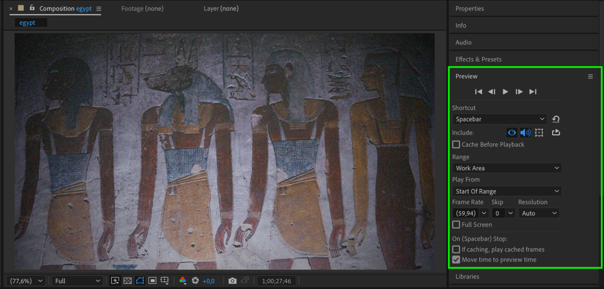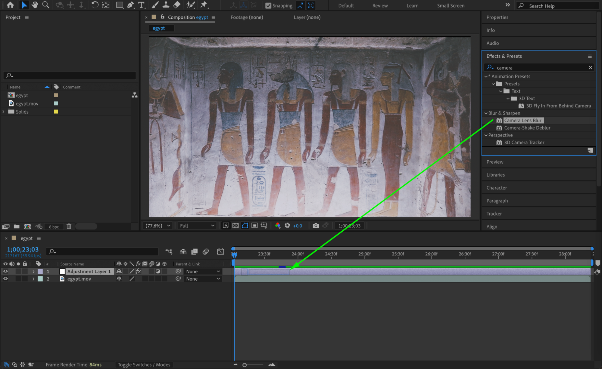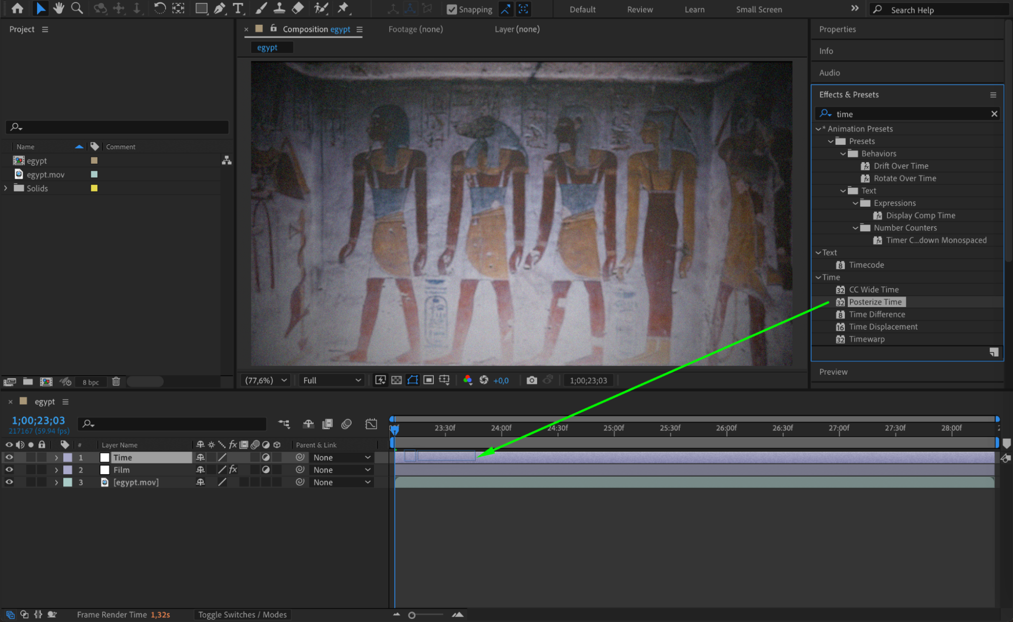 Press Spacebar to preview your animation. If the vintage look is as desired, go to Composition > Add to Render Queue and export your final video.