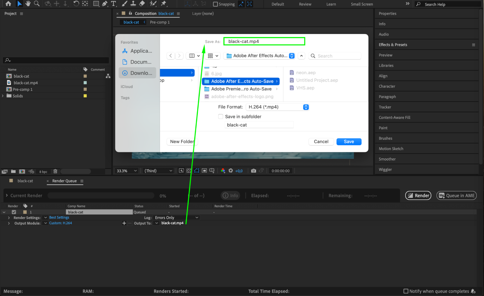 Click the text next to Output To to select the location and filename for your final render. Choose an easily accessible folder to avoid confusion and organize your project files.