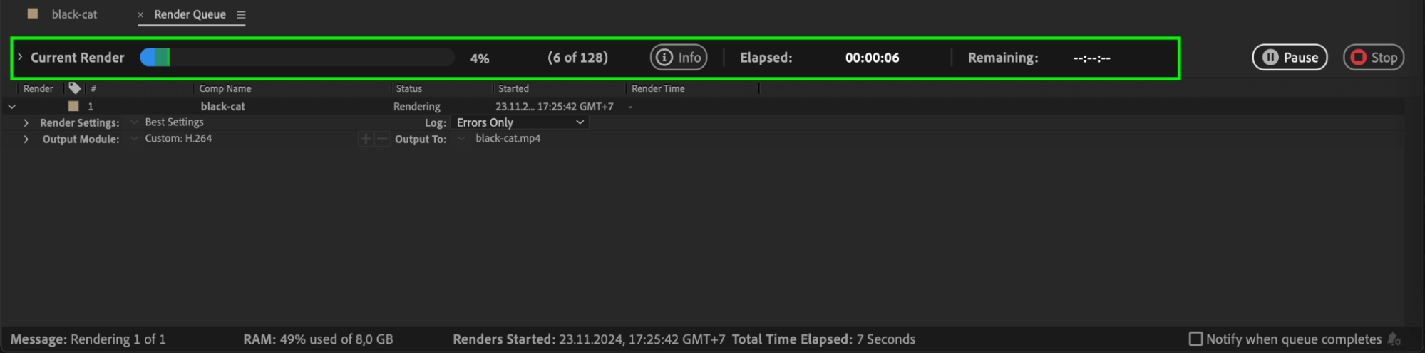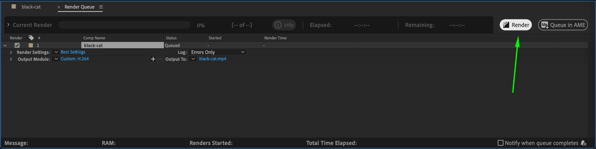 Press the Render button in the Render Queue or start the render in AME. Monitor the progress bar to ensure the process runs smoothly. Depending on your system and project complexity, rendering may take minutes or hours. Once completed, review the output for any issues.