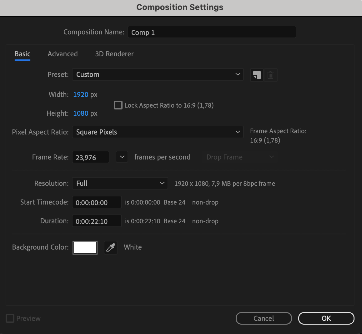Open After Effects and create a new project. Then, create a new composition by selecting “New Composition.”