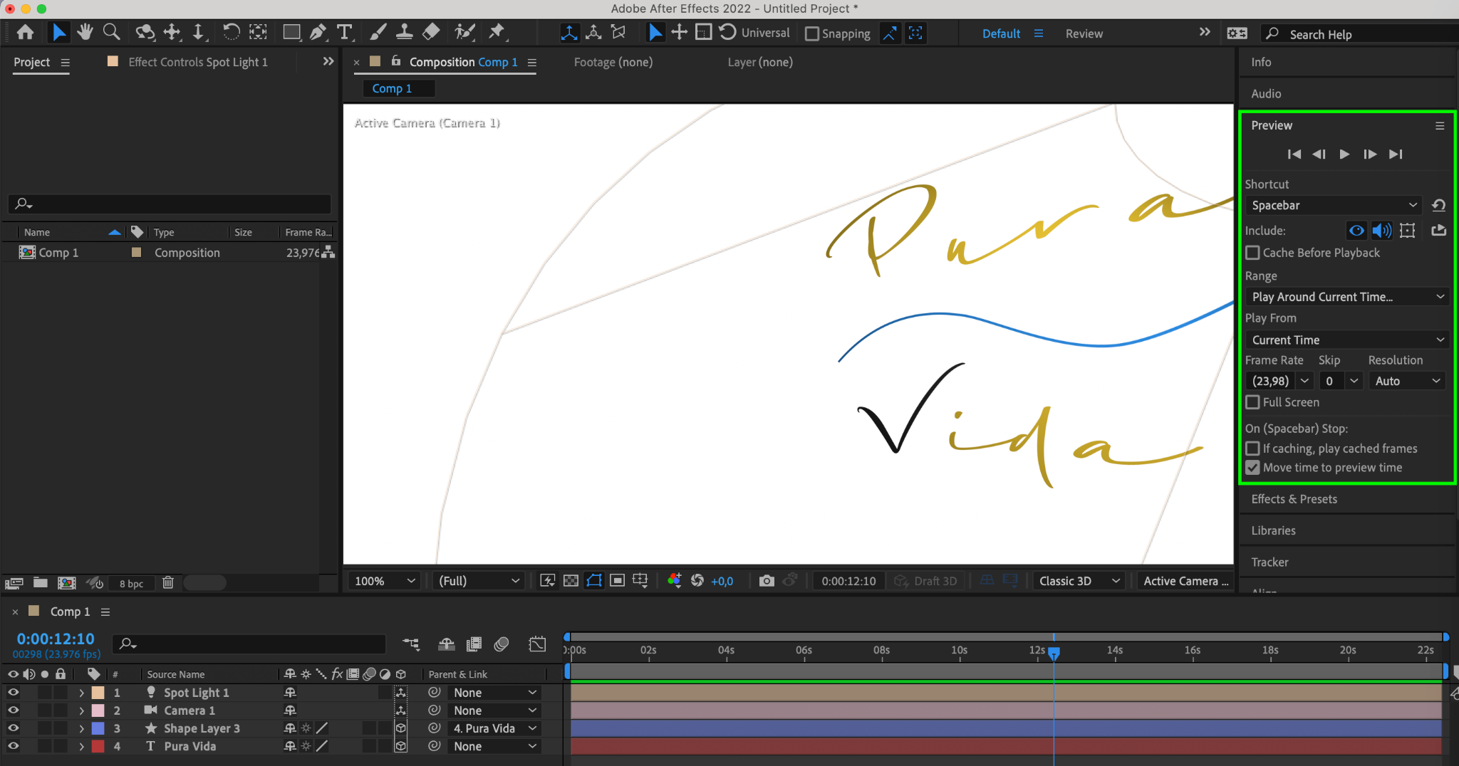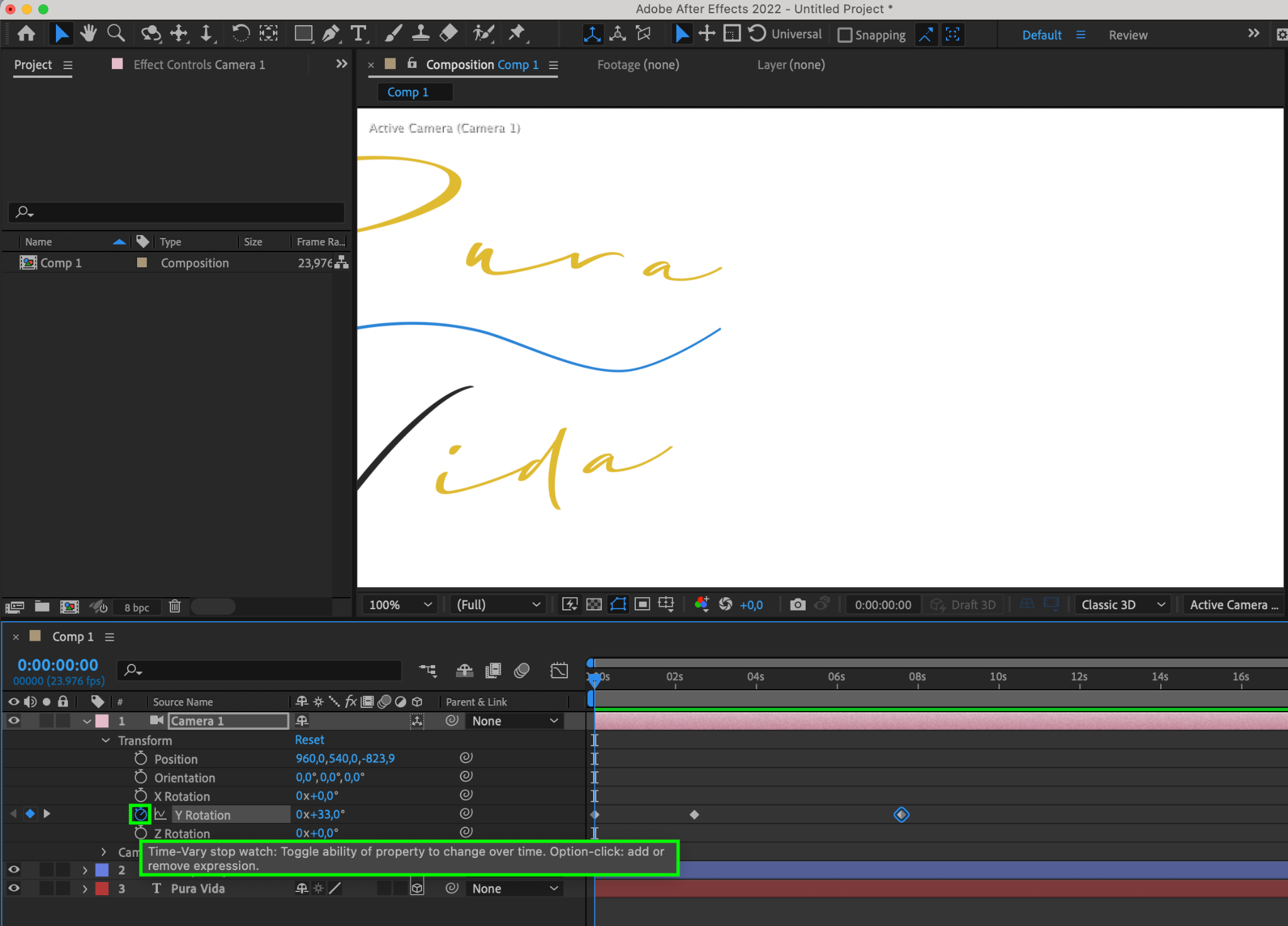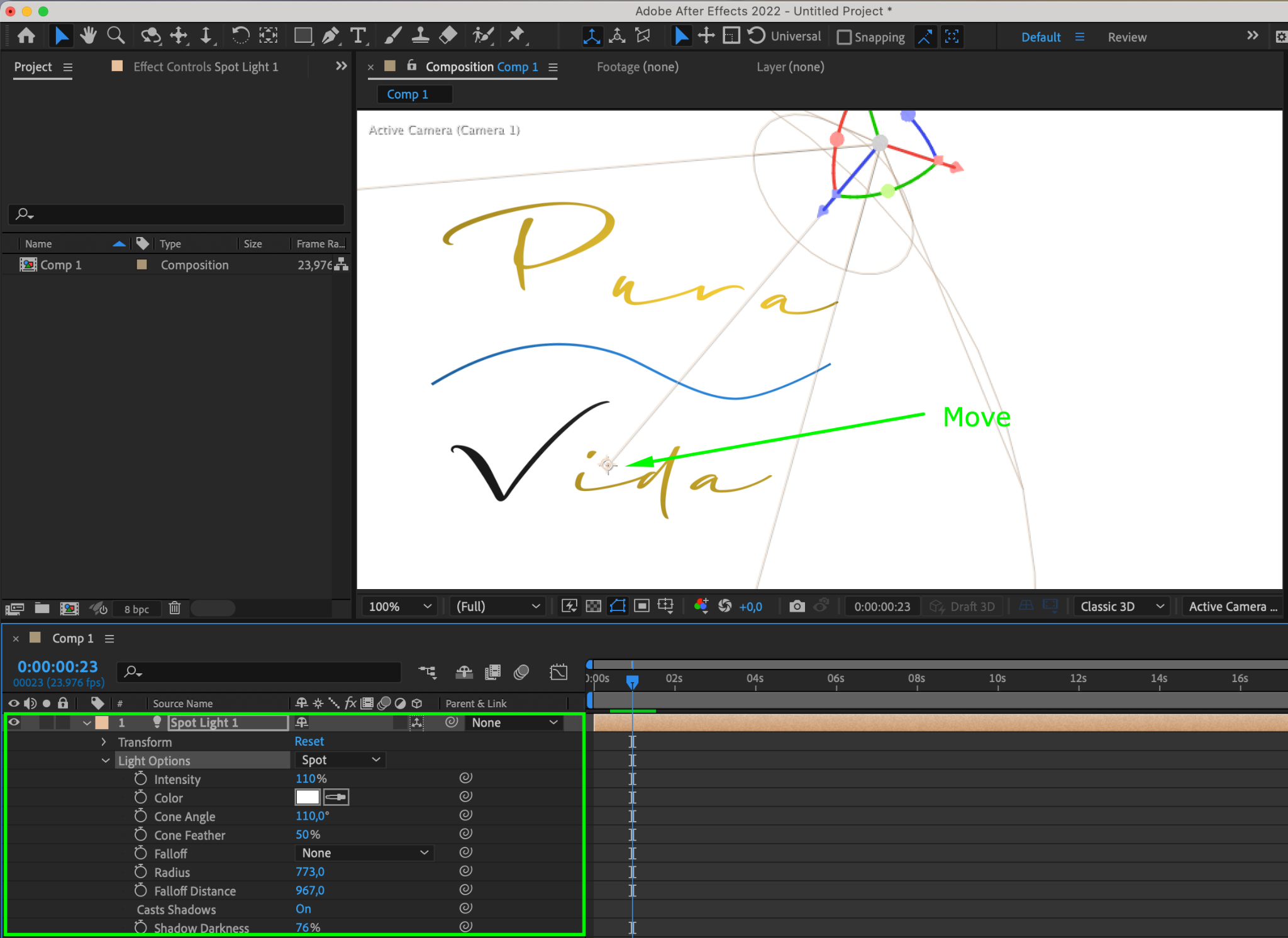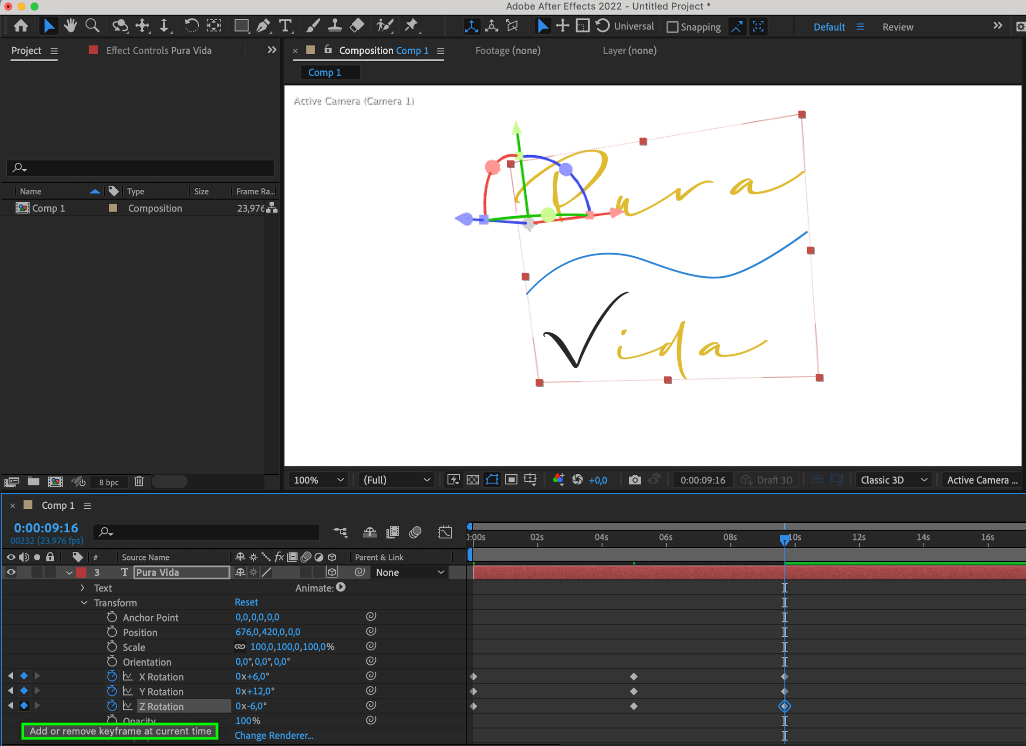 Now that your objects are in 3D space, you can animate them using standard After Effects animation tools. This includes keyframes, expressions, motion paths, and more.