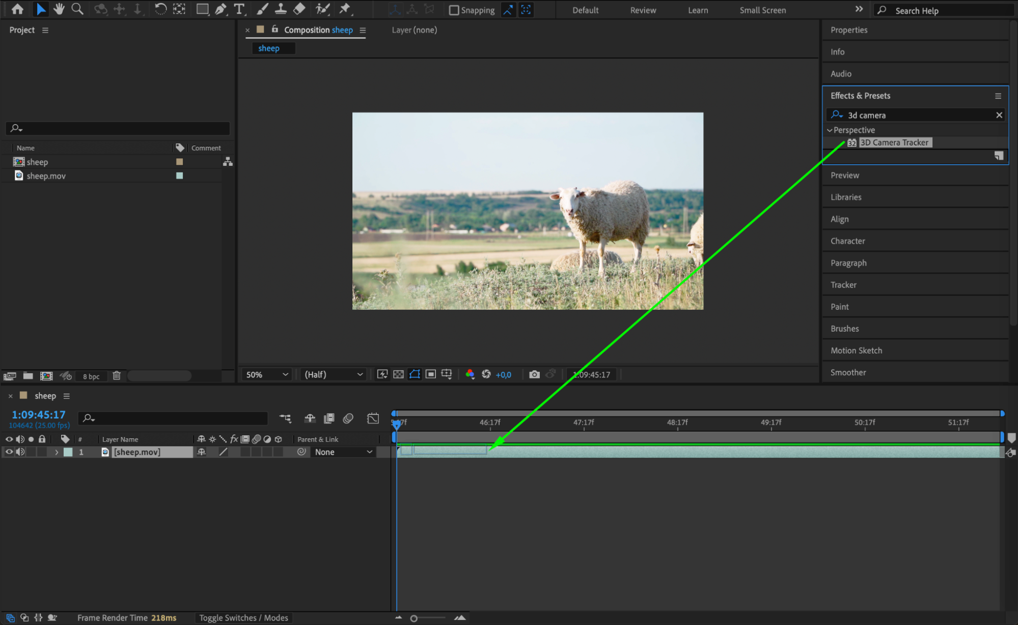 Step 2: Apply the 3D Camera Tracker Effect