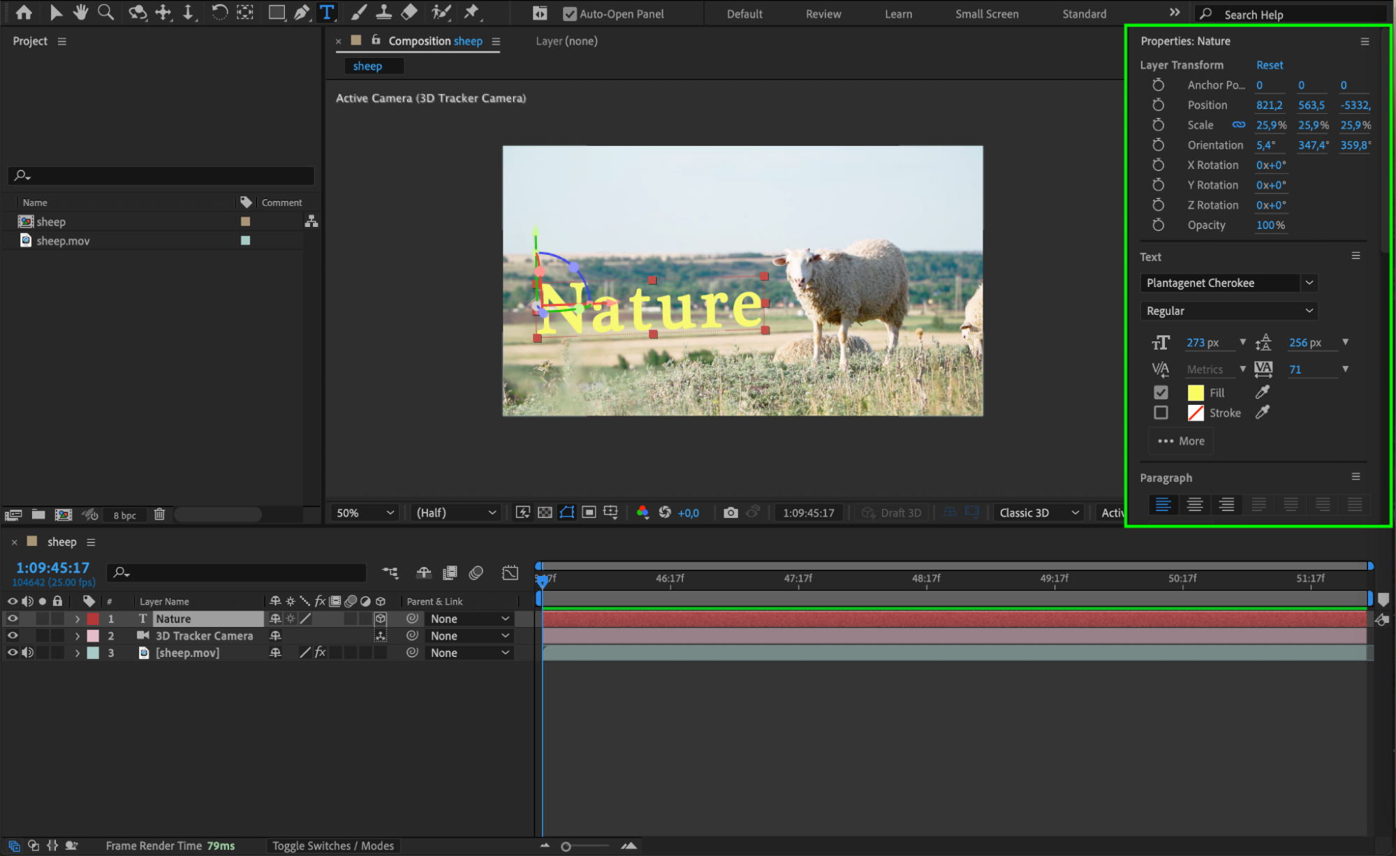 When you’re satisfied with the animation, render your project. Go to Composition > Add to Render Queue, select your preferred settings, and click Render to finalize your 3D tracked text animation.