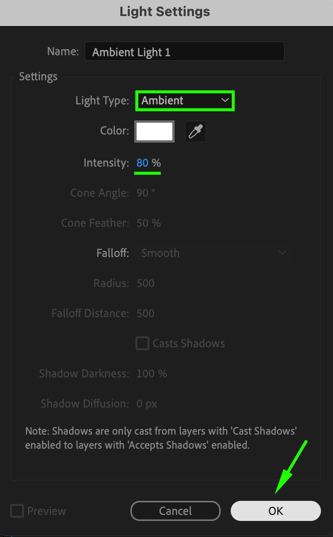 An Ambient Light with an intensity of 80% to softly illuminate the scene.
