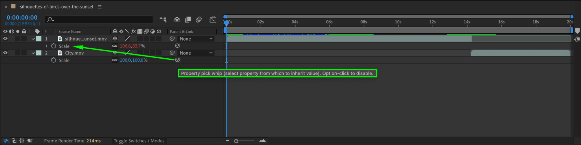 After Effects makes it easy to link properties between layers with the Pick Whip tool, which is great for creating dynamic relationships between layers. To use the Pick Whip, click the spiral icon next to the expression field and drag it to the property of another layer you want to link. This is useful when you want one property (e.g., opacity) to be controlled by another property (e.g., position) without manually writing out the expression code.