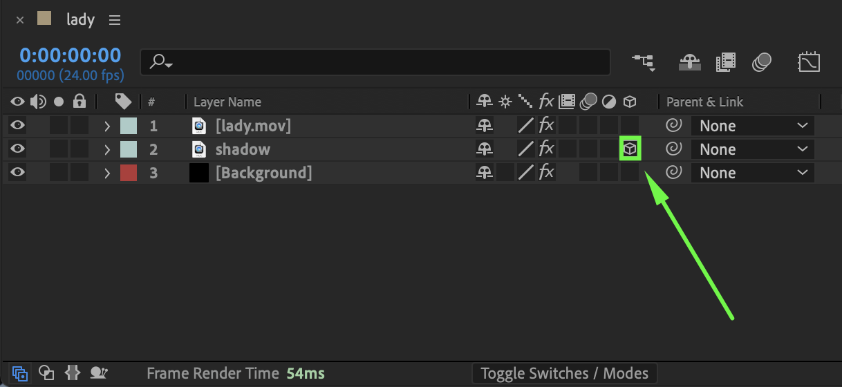 Enable the 3D Layer switch for the shadow layer. Adjust: