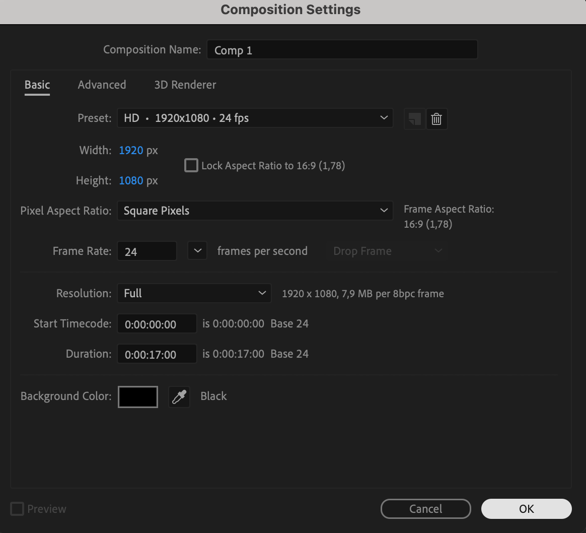 Open After Effects and go to Composition > New Composition. Set your preferred resolution, frame rate, and duration for the project.