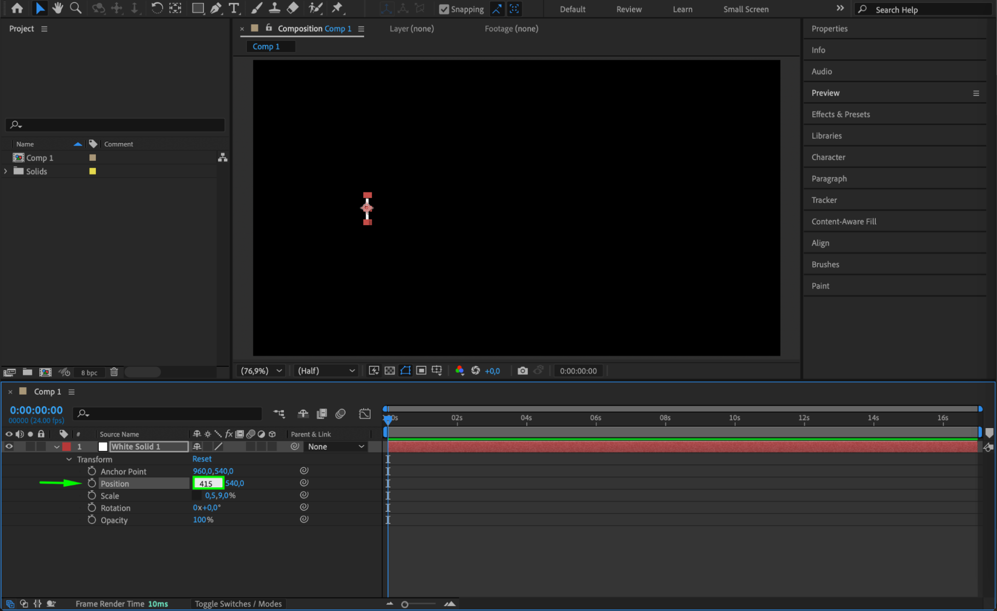 Move the CTI a few frames forward and click the stopwatch icon next to Position to create a keyframe.