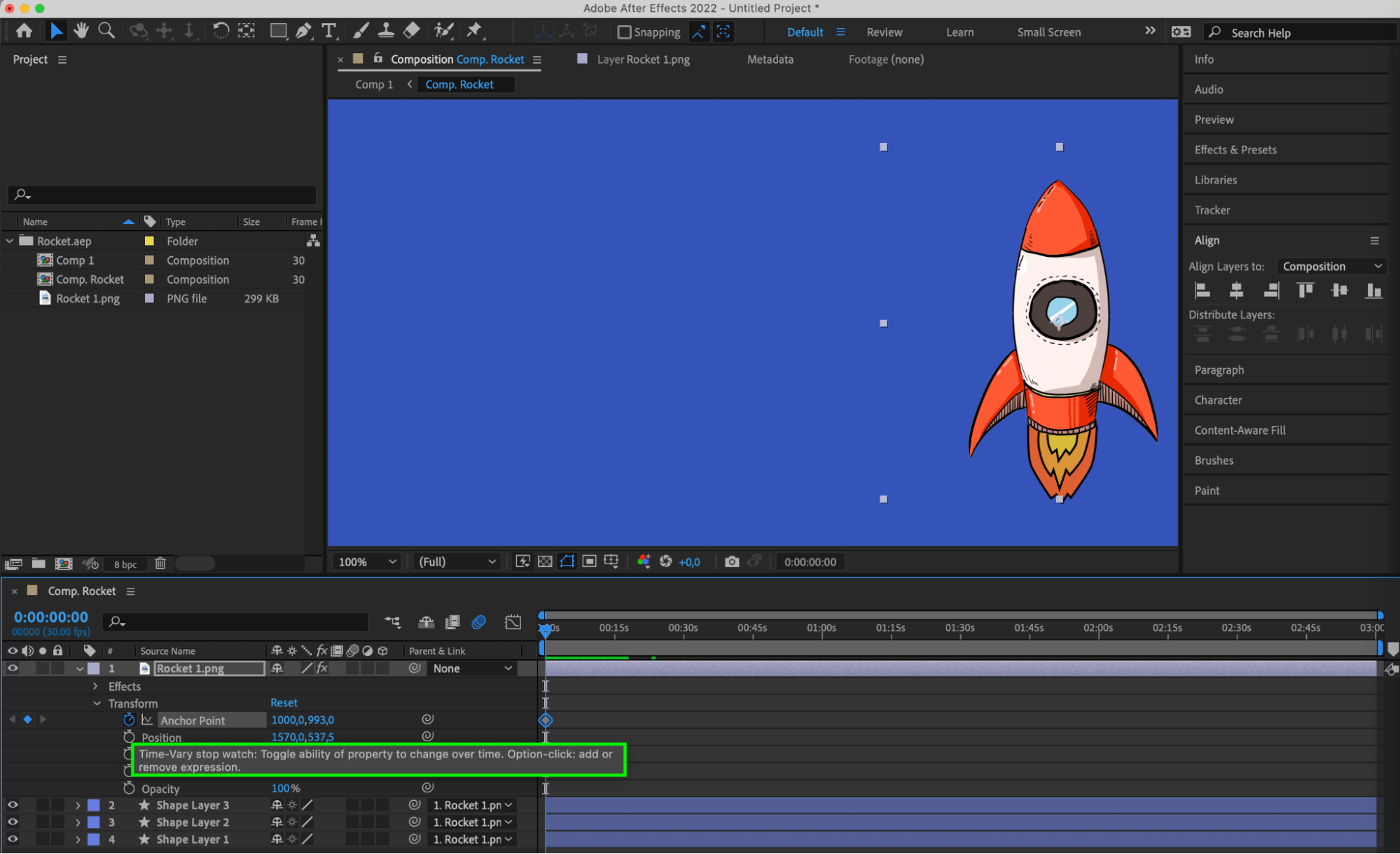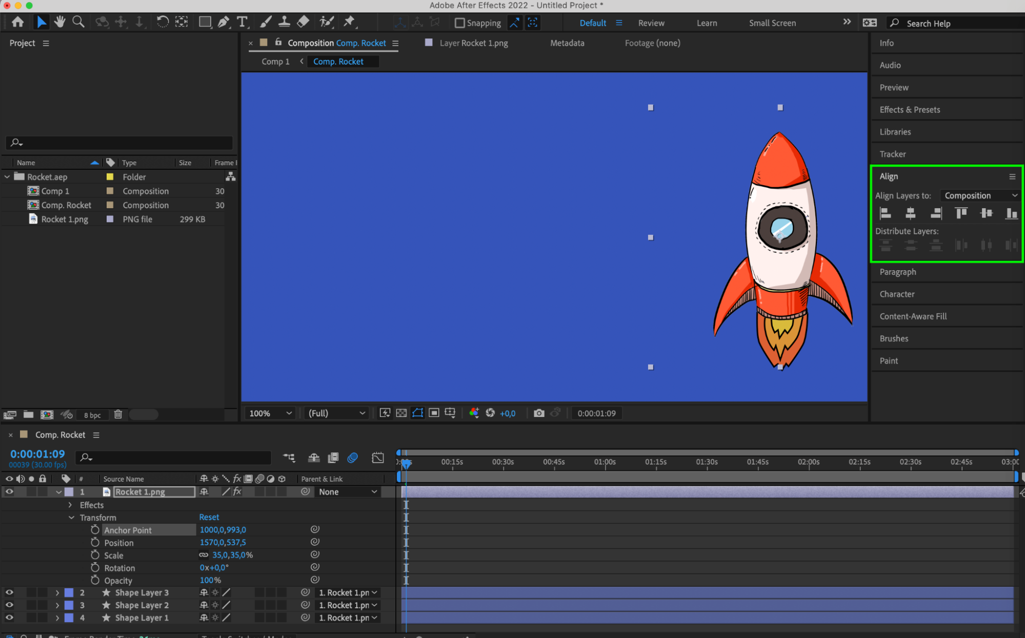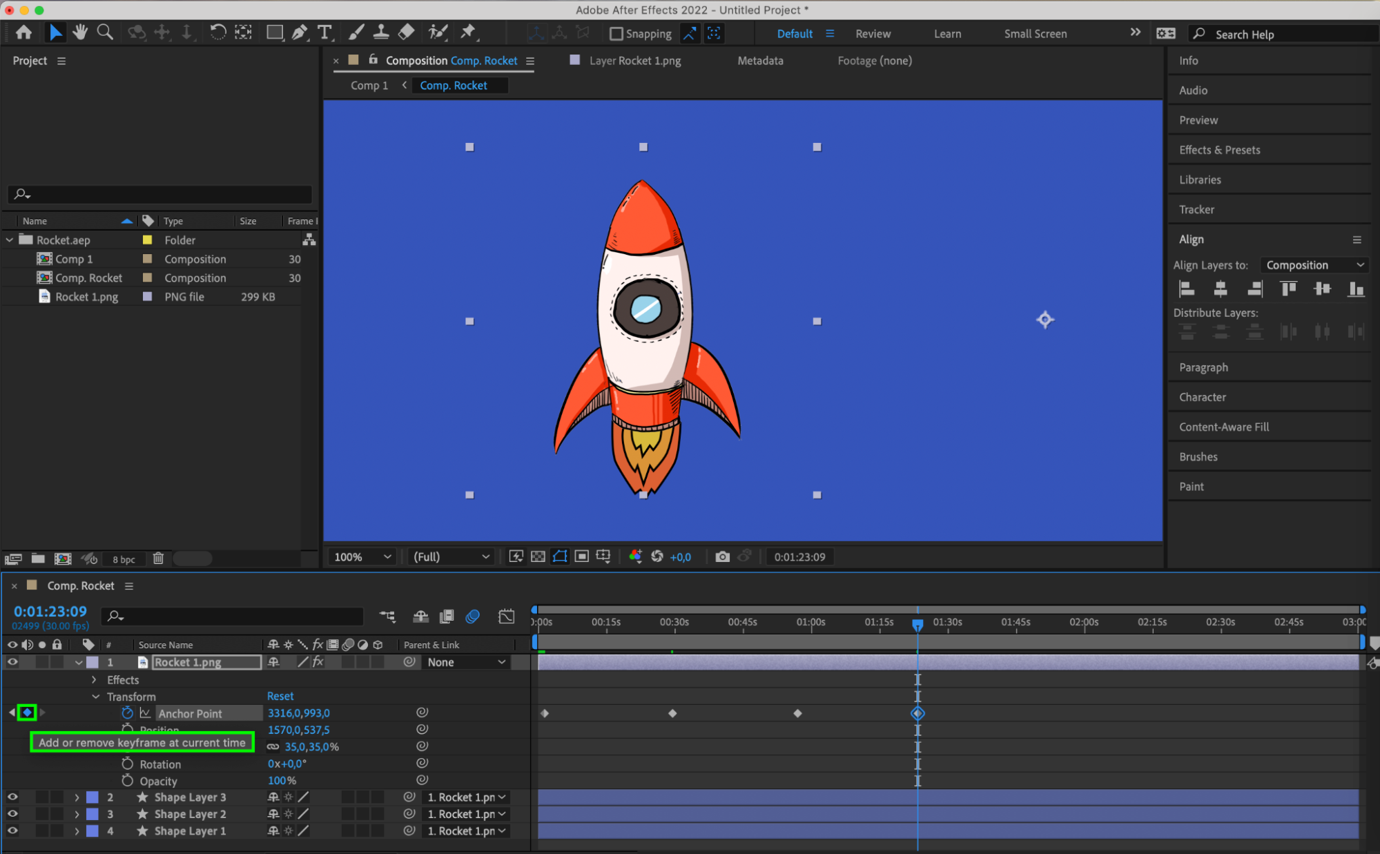 6. Use the Align panel to fine-tune the anchor point for symmetrical animations.