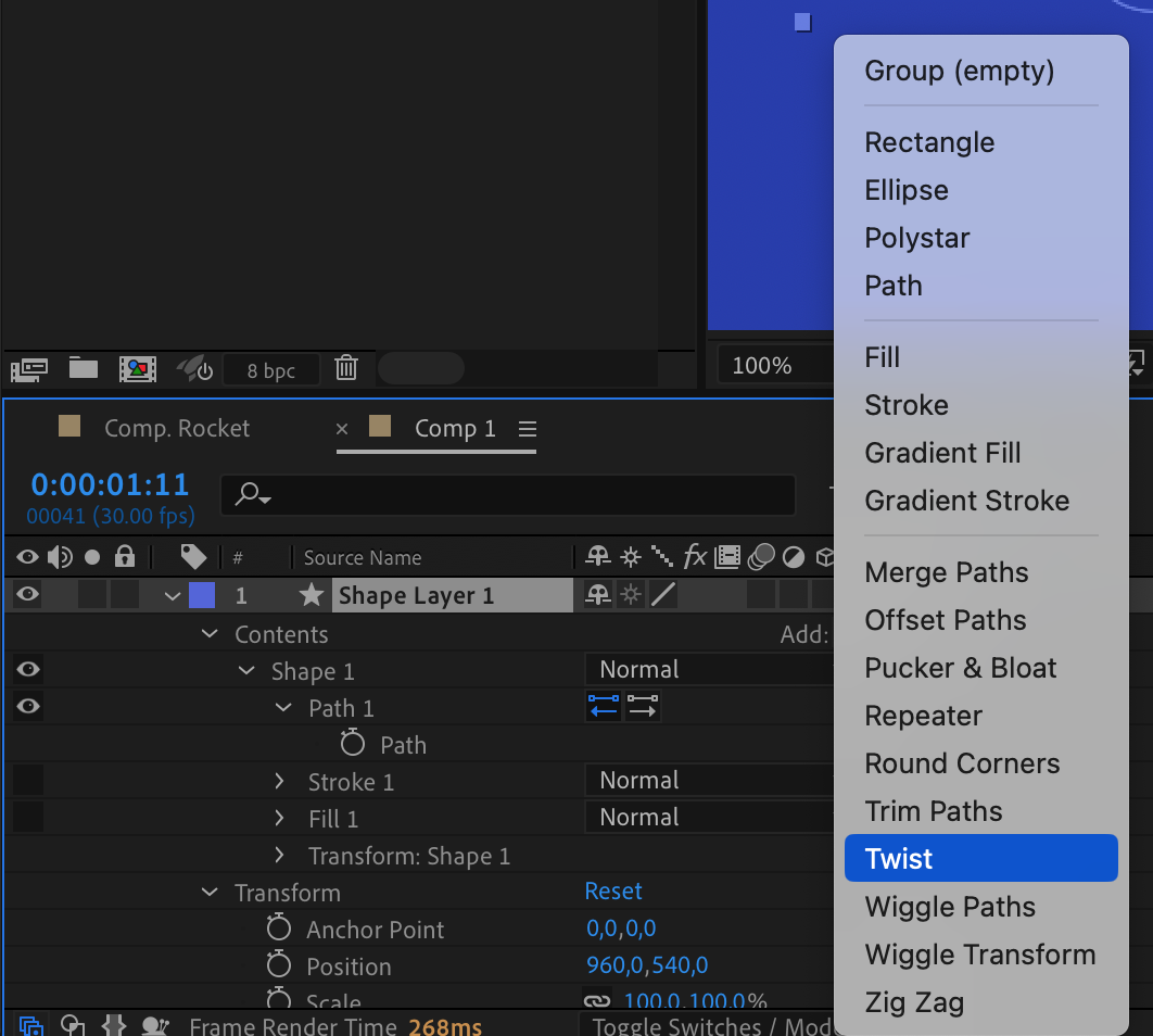 3. Creating Motion Paths and Adjusting Anchor Points: First, use the Pen Tool to create a path. Then, navigate to the Contents section of the desired layer and click on the triangle next to “Add”. This reveals options like “Twist,” “Wiggle Path,” and more. Utilize these tools to adjust anchor points visually and ensure smooth movement along trajectories.
