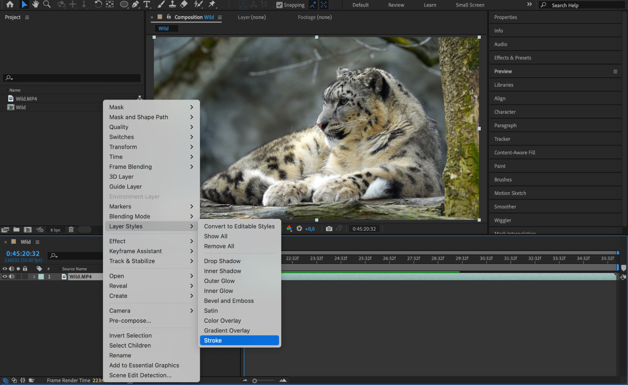 Right-click on the video layer in the timeline and choose Layer Styles > Stroke from the menu.