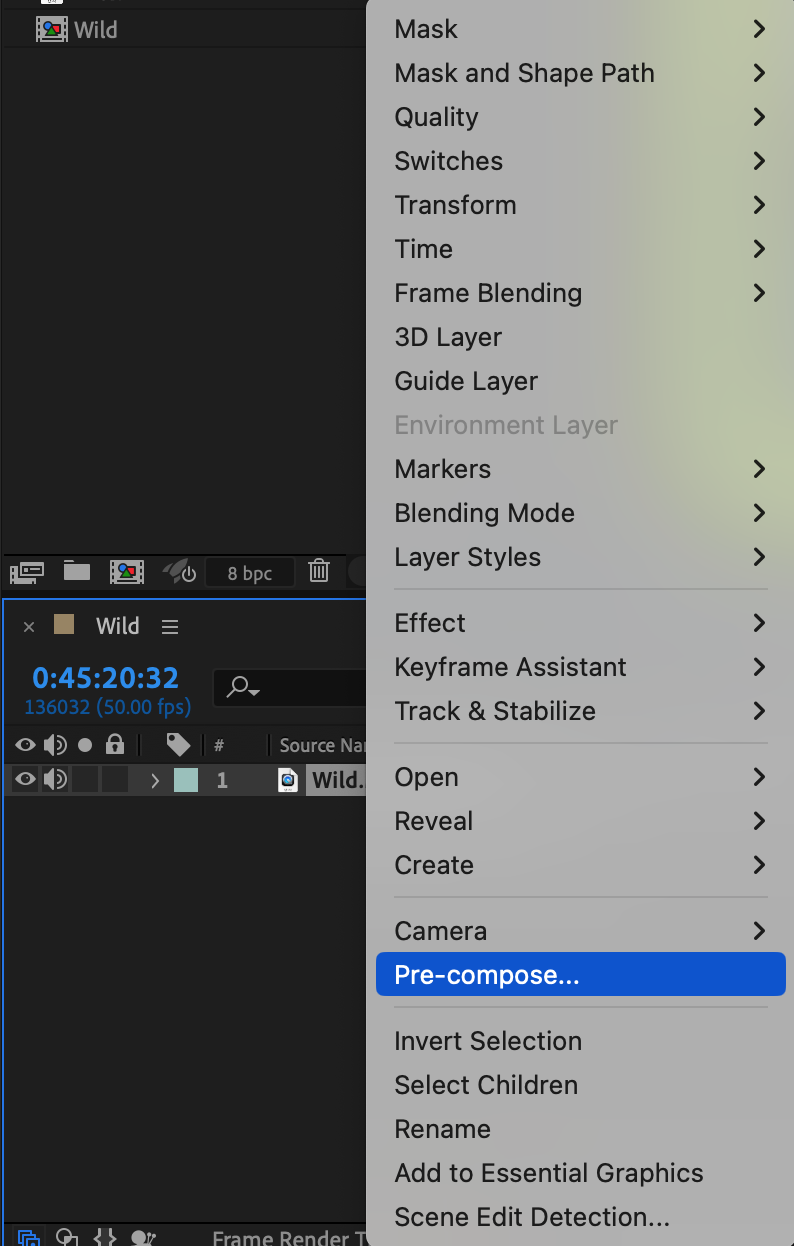 If you need to adjust the video’s size while keeping the border intact, right-click the layer and select Pre-compose. Once pre-composed, adjust the scale of the video within the composition to refine the overall framing.