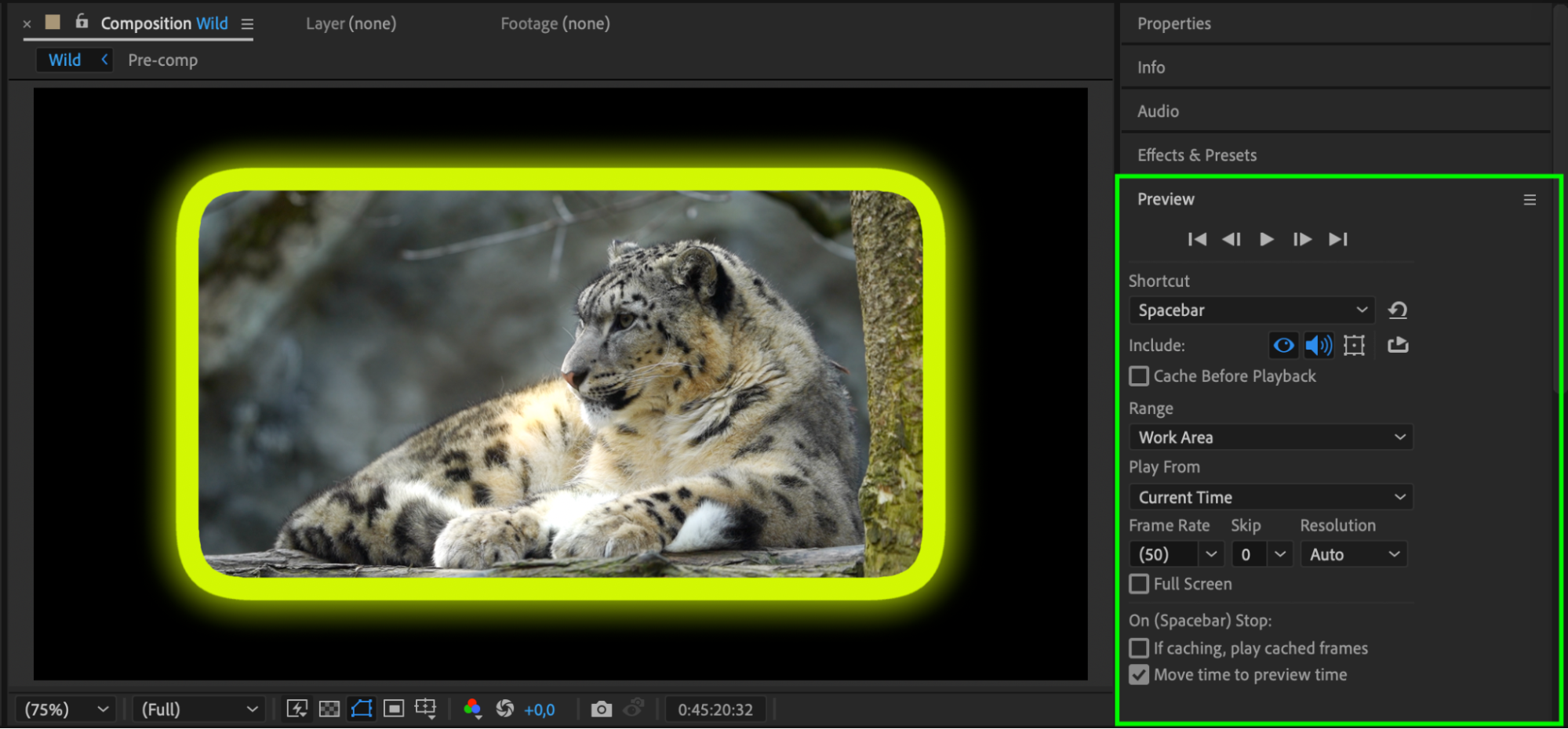 Press the Spacebar to preview the video with the border effect. Make any necessary tweaks to the color, size, or additional effects.
