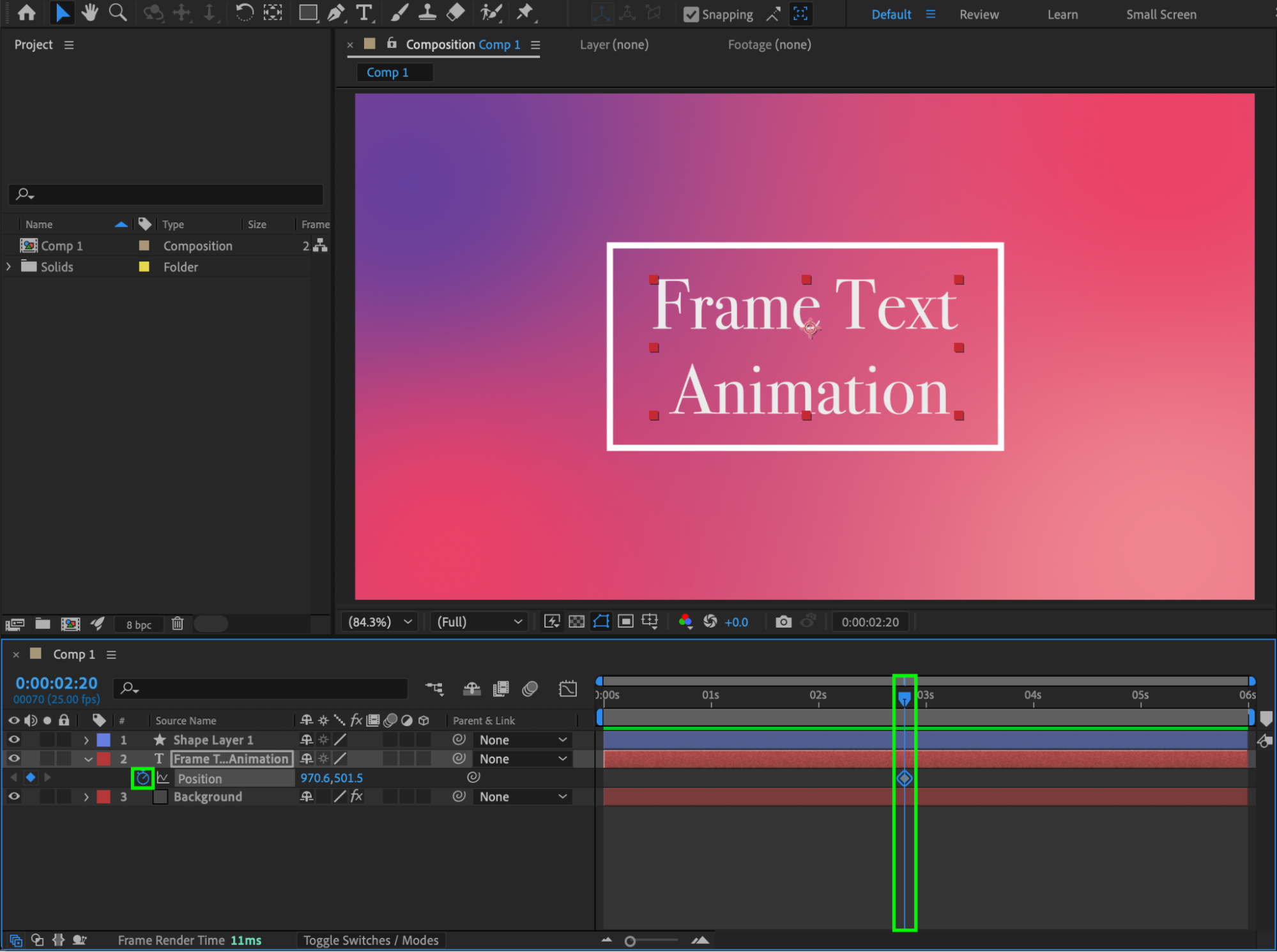 Move a few of the rectangle keyframes slightly to the right on the timeline to create a natural delay between the frame and text animations.