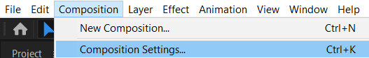 Before you start adding black bars, make sure your composition settings match the desired aspect ratio of your final video. You can change the composition settings by going to Composition > Composition Settings or by using the shortcut “Ctrl/Cmd + K”.