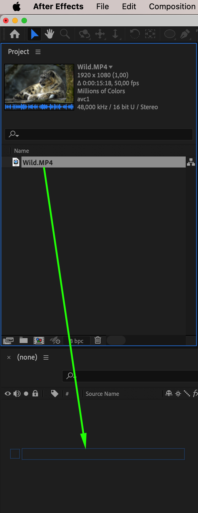 Start by importing your video into After Effects. Go to File > Import > File and select your video. Drag it onto the timeline to create a new composition automatically.