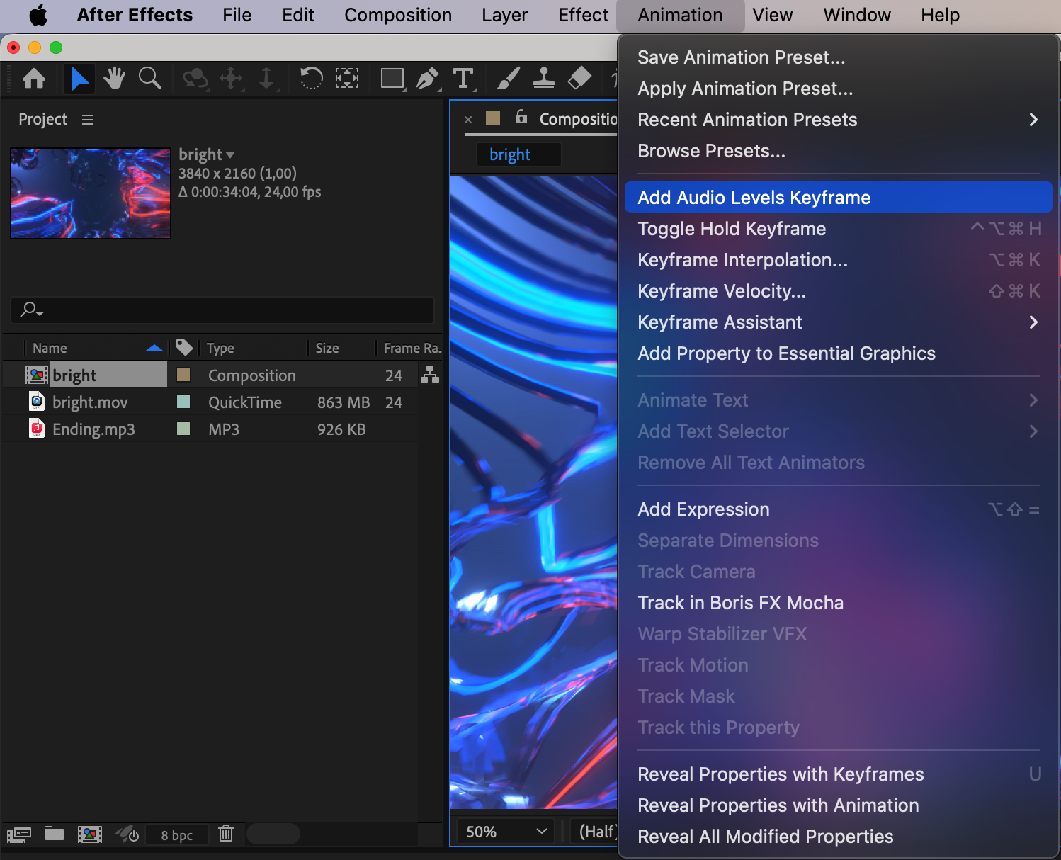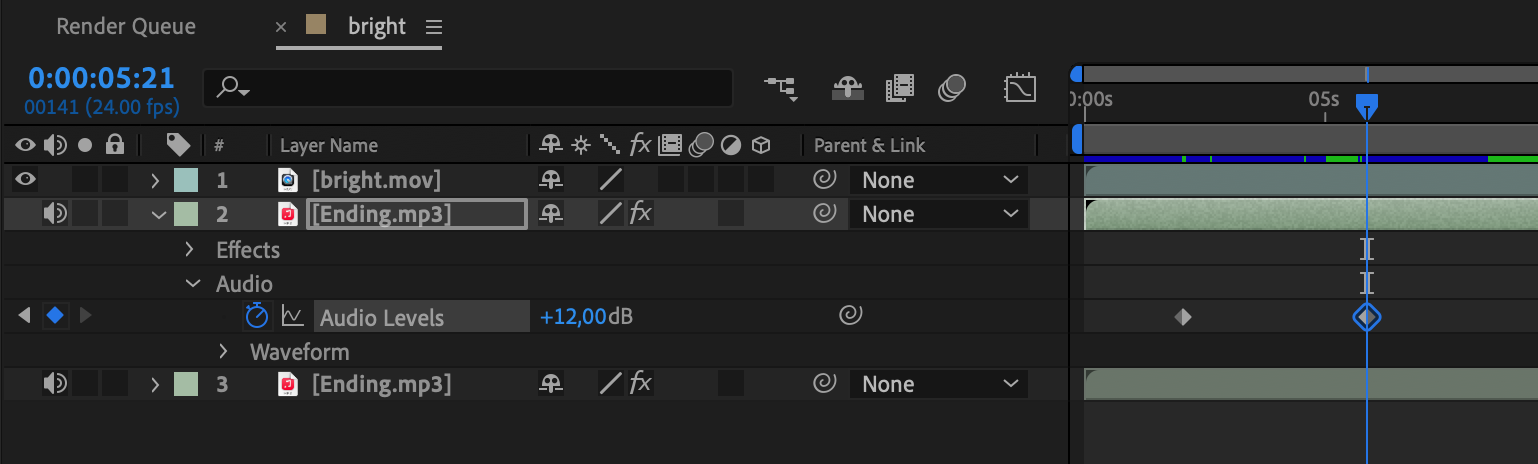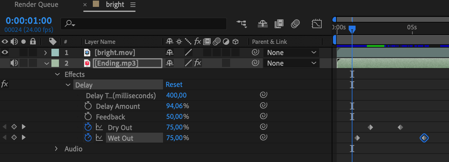 3. Utilize Audio Levels keyframes: In After Effects, audio levels control the volume of sound on the audio track. When creating an echo effect, using the ‘L’ hotkey to display audio levels allows precise control over moments when the sound amplifies and diminishes. This ensures accuracy in synchronizing echo effects with audio, resulting in more expressive and dynamic sound compositions.