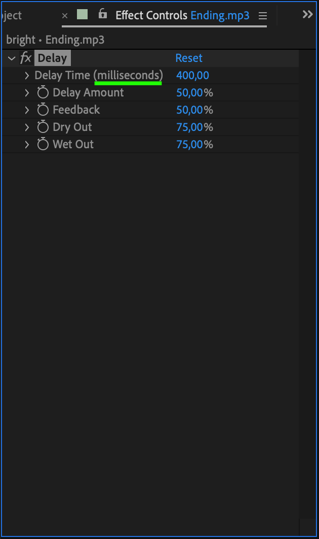 2. Locate the “Delay” effect and click on the stopwatch icon next to its parameters to enable keyframing.