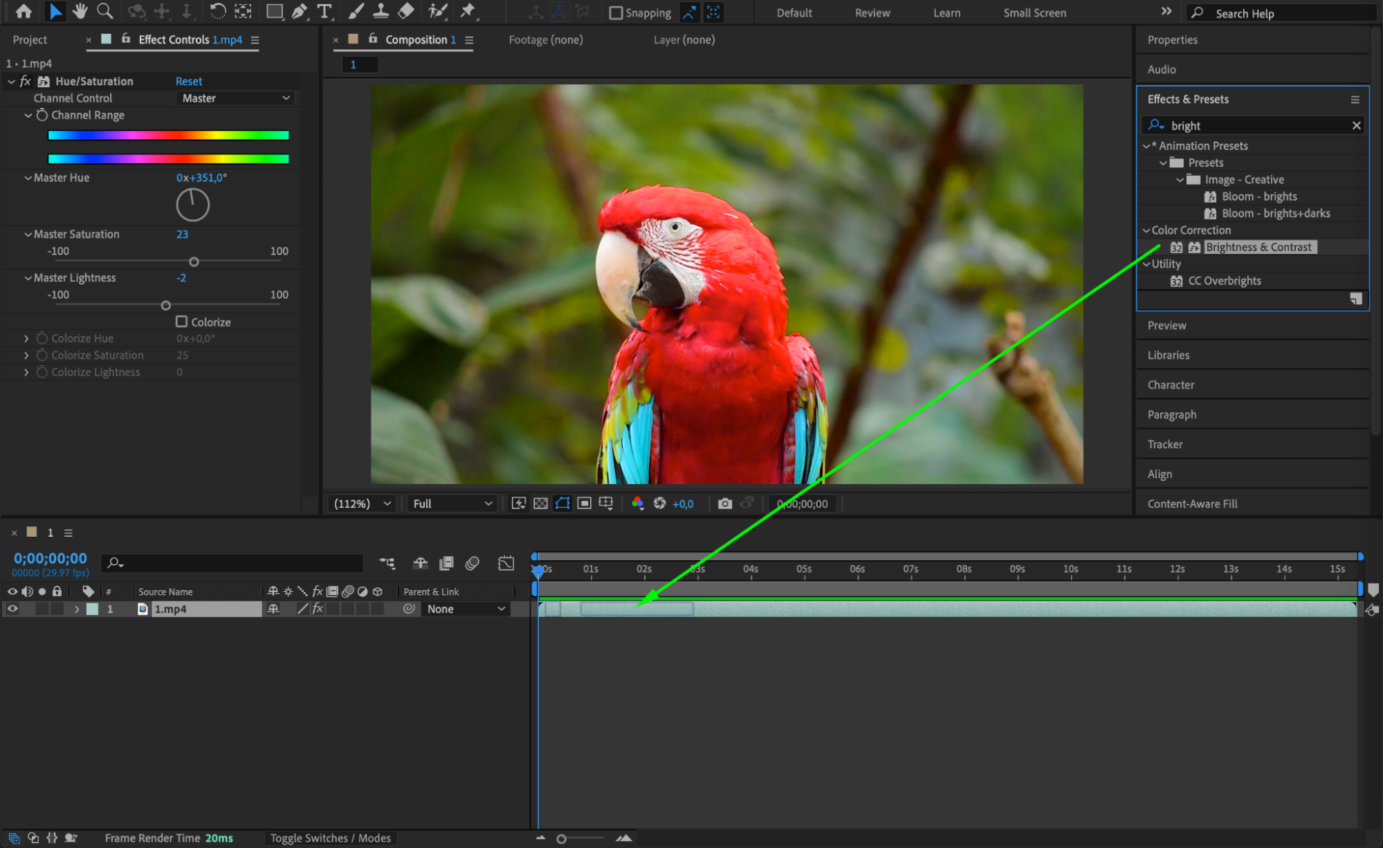 Drag the chosen effect (e.g., Hue/Saturation) onto your video layer. The Effect Controls panel will open, displaying all the settings for that effect. You can now adjust the sliders and values to achieve the look you want.