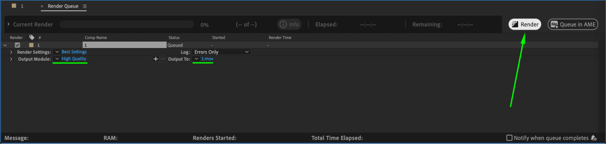 Once you’re satisfied, go to Composition > Add to Render Queue or Add to Adobe Media Encoder Queue to export the final video.