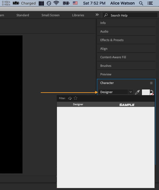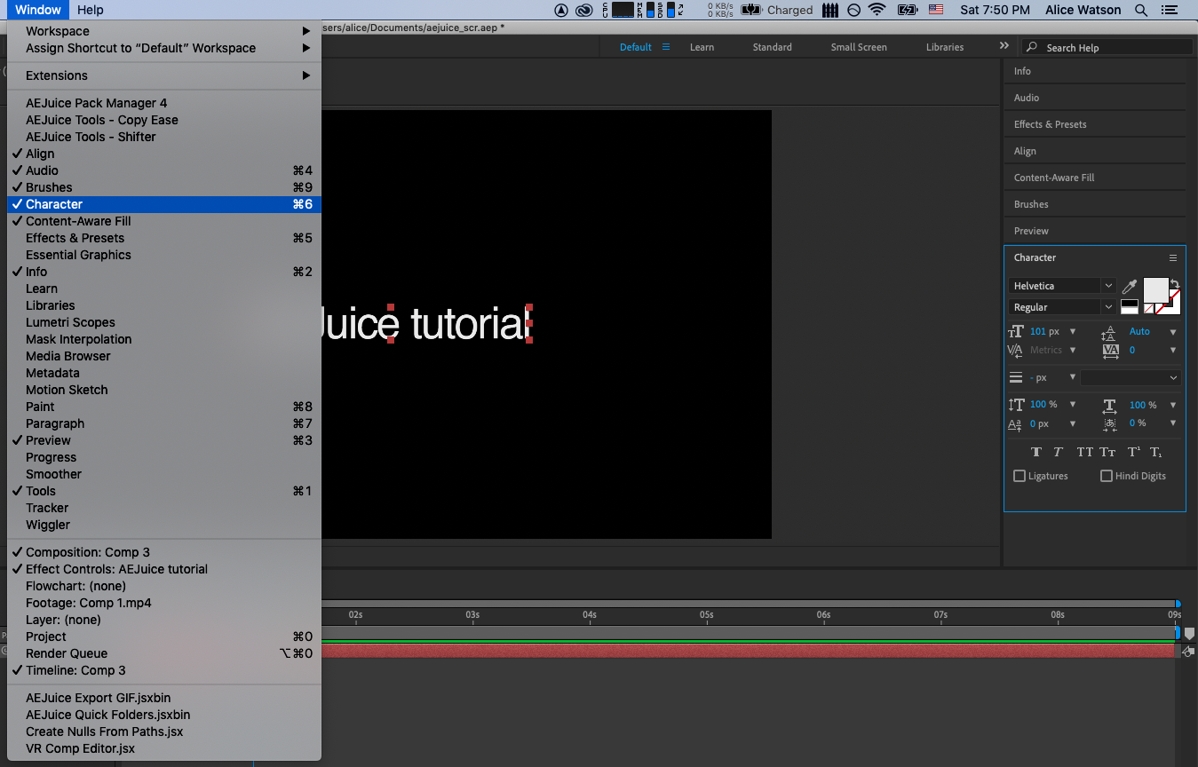 3. Open After Effects and go to Character window