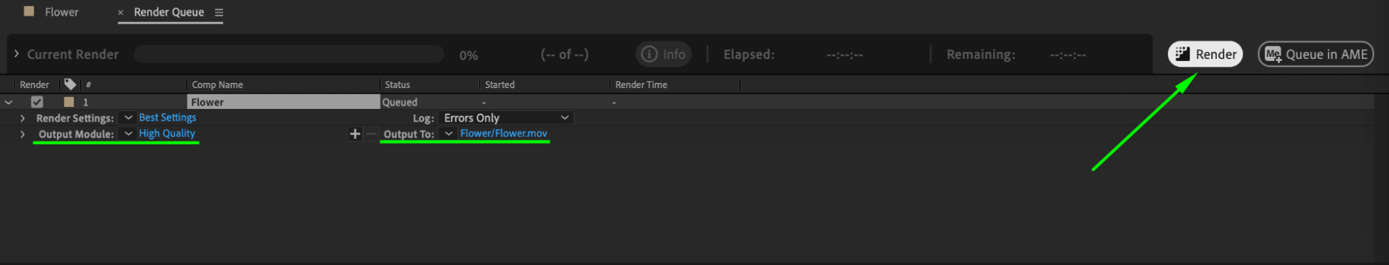 When you are ready to export your video, go to Composition, select Add to Render Queue, adjust the settings according to your needs, and click Render.