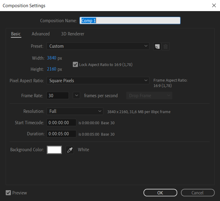 1. Select the composition you want to modify: Go to the Project panel and choose the composition you wish to work on. Right-click on it and select “Composition Settings” to open the Composition Settings dialog box.