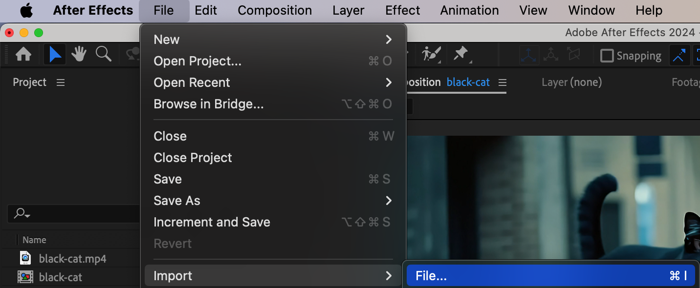 To add the MP3 to After Effects, go to the top menu and select File > Import > File… or press “Ctrl/Cmd + I”. Locate your MP3 file in the dialog box, select it, and click Open. The file will now appear in your Project panel.