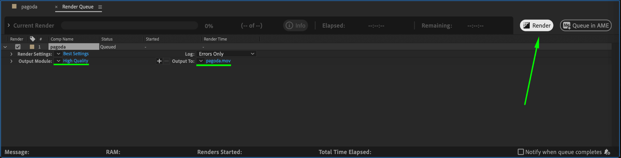 Once you’re satisfied with your animation, preview it one last time. Make any necessary adjustments and then render your project via Composition > Add to Render Queue.