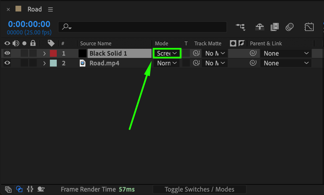 Step 3: Set the Black Solid Layer to Screen Mode