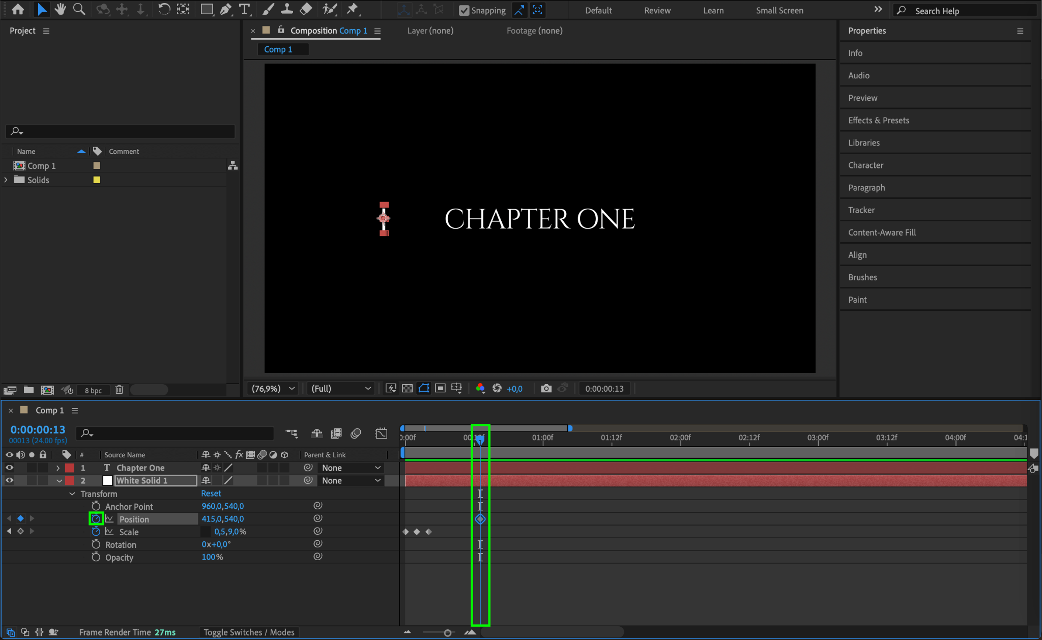Then, move one frame forward and shift the solid slightly back to create a natural easing effect.