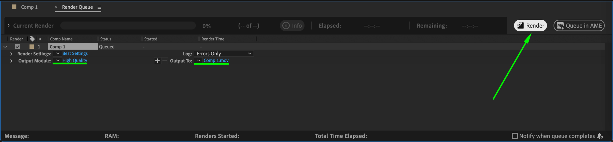 Press Spacebar to preview the animation. If satisfied, go to Composition > Add to Render Queue, adjust the settings, and export your final animation.