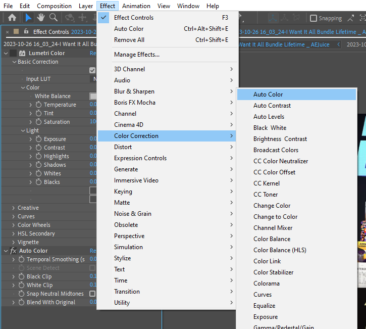 After Effects provides the Lumetri Color effect, which is a versatile tool for color grading. Apply this effect to your footage by selecting the layer, navigating to the Effects menu, and choosing Lumetri Color. From here, you can modify various properties such as exposure, highlights, shadows, and color balance. Experiment with these settings to achieve the desired look and feel.