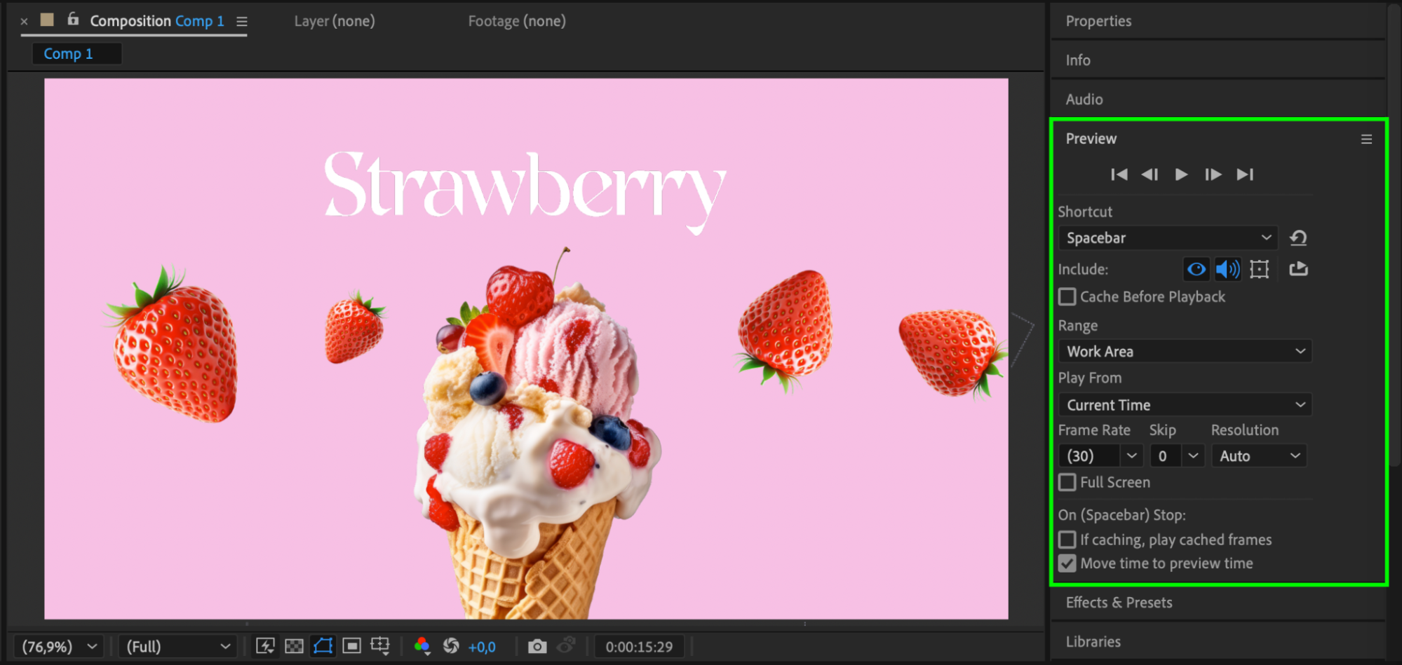 Press Spacebar to preview your animation in real-time. Observe the motion to ensure keyframes are aligned correctly. If necessary, tweak their positions or easing settings for a more natural effect.