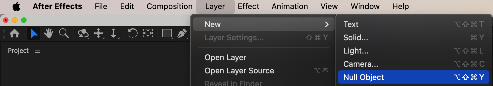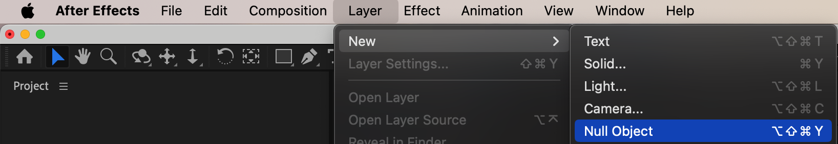 Go to Layer > New > Null Object and enable 3D. Name it “Null 2” – this will control the entire book’s position.