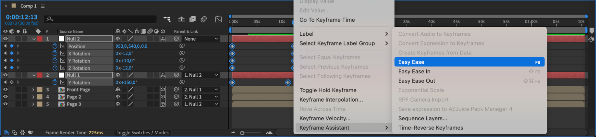 Step 20: Apply Easy Ease and Graph Editor Adjustments