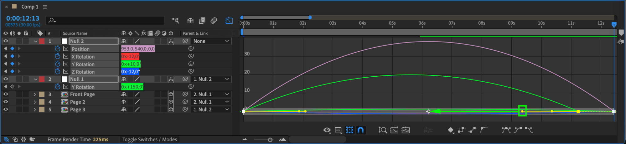 Now, when Null 1 rotates, both pages will follow its movement, creating a natural page-flipping effect.