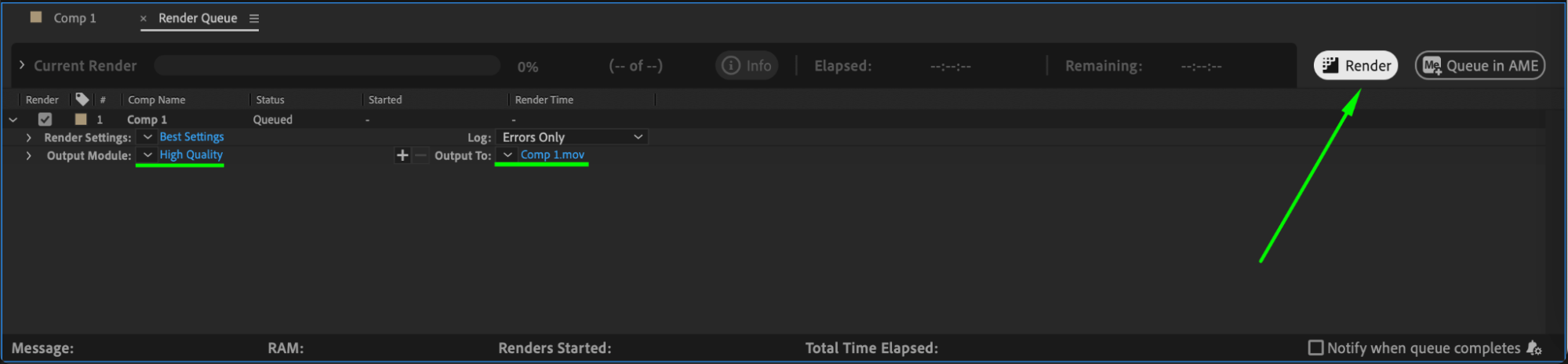 Go to Composition > Add to Render Queue, choose the desired format, and render your final animation.