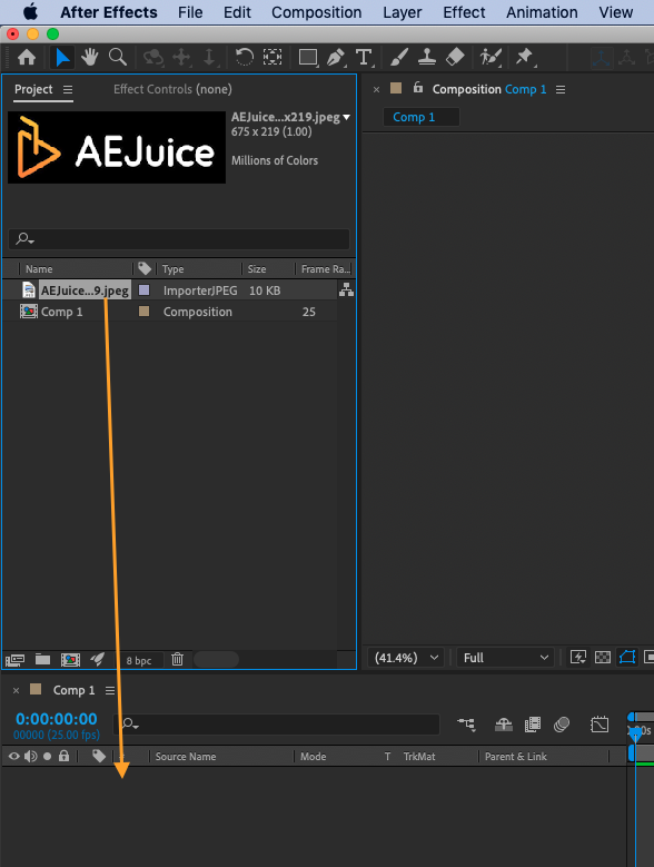 Add the logo file to the composition by dragging it from the Project panel onto the Timeline panel.