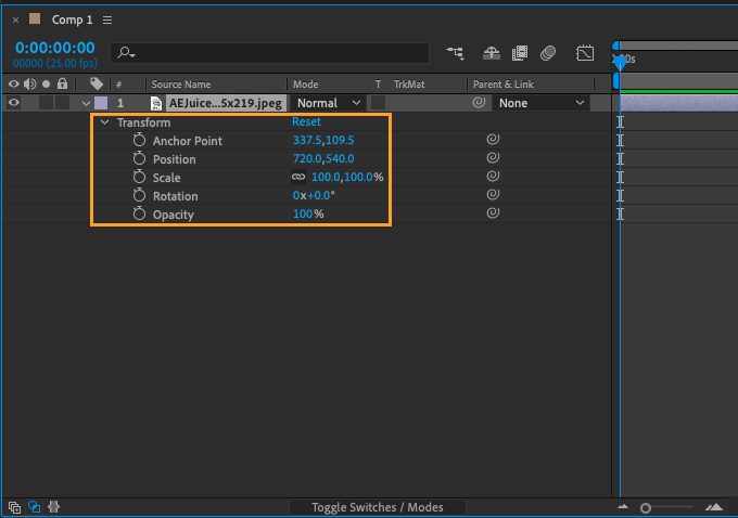 Use the Transform properties, such as Position, Scale, and Rotation, to animate the logo. These properties can be accessed by unfolding the logo layer in the Timeline panel.