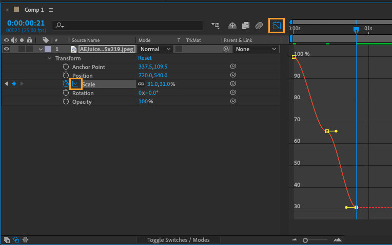 - Click the stopwatch icon next to the property you want to animate.