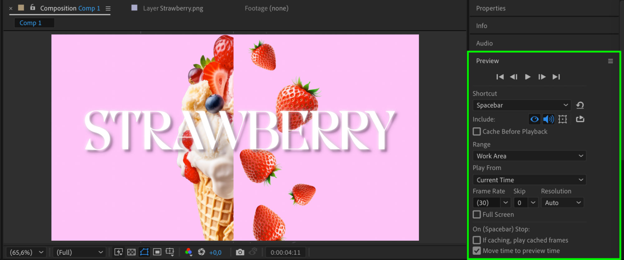 Press Spacebar to preview the animation. Make any necessary adjustments to timing and transitions for a polished look.