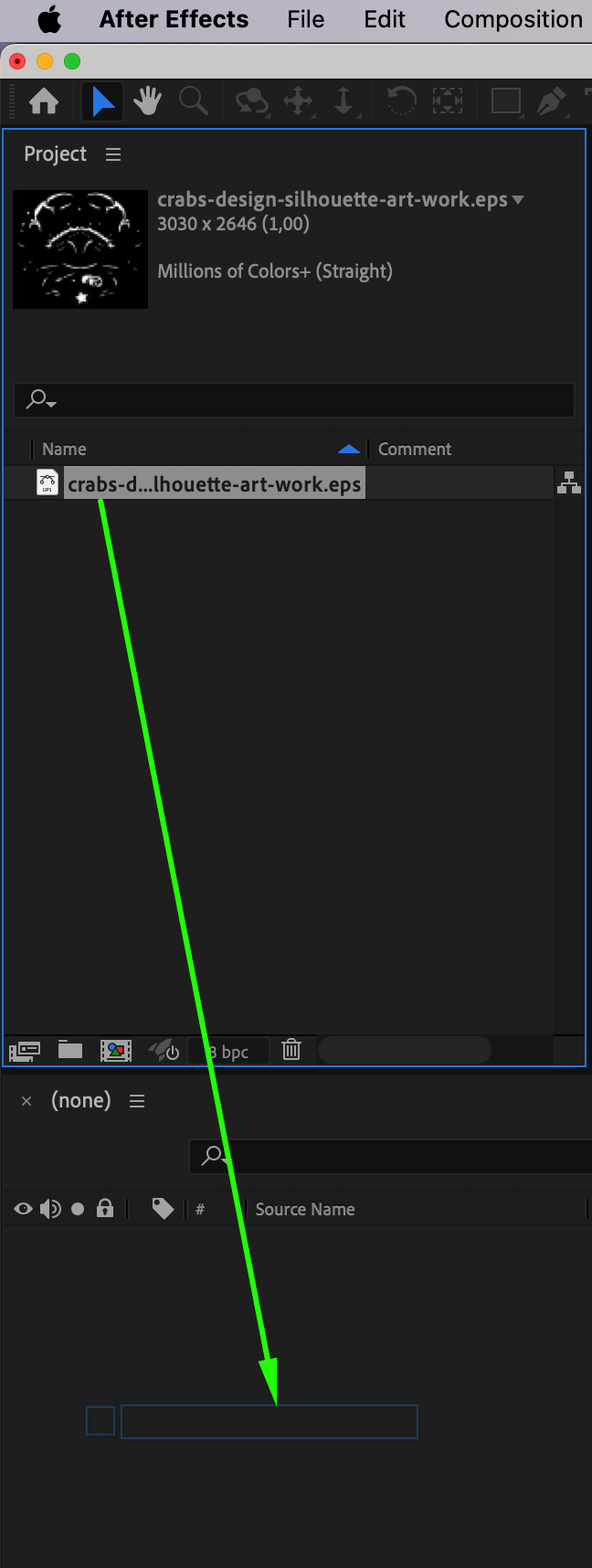 Now, drag your AI file from the Project Panel into the Timeline to begin working on it. This will create a new layer in the timeline, which you can start manipulating and animating. Make sure the composition settings (frame rate, resolution, etc.) match the requirements of your project for optimal performance.