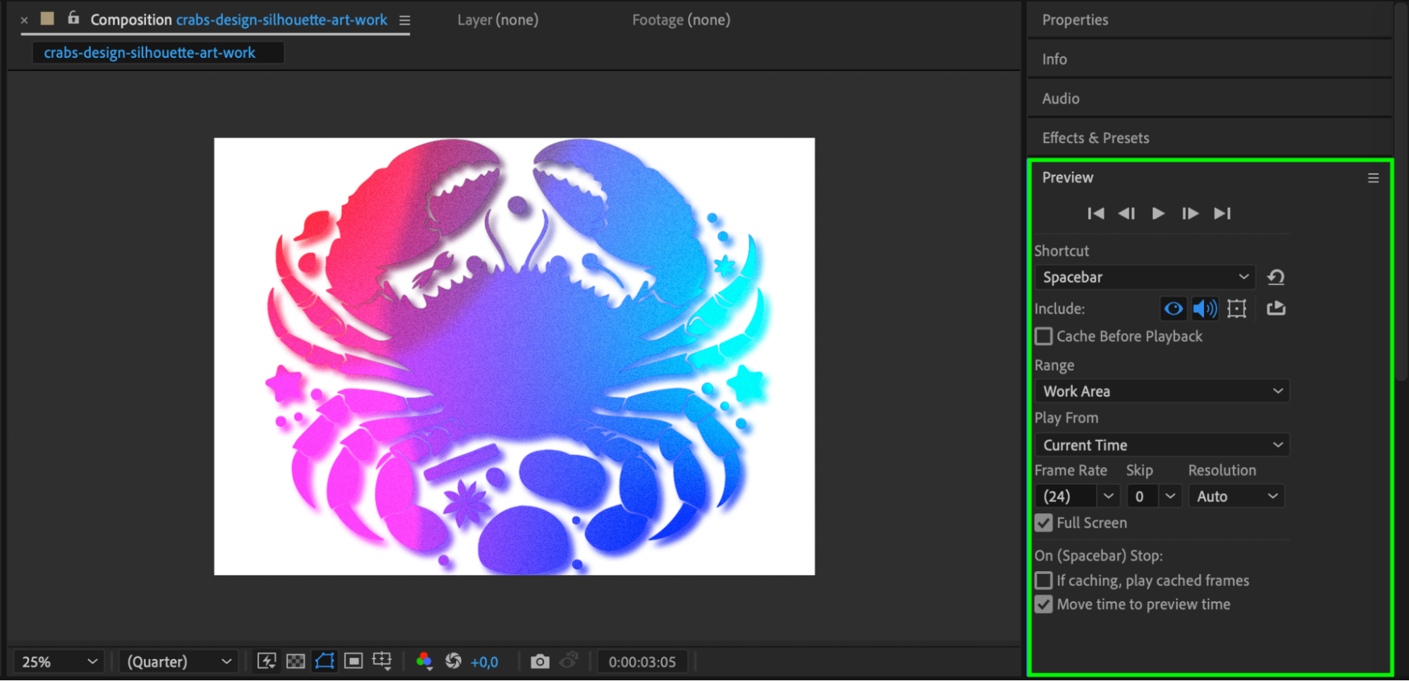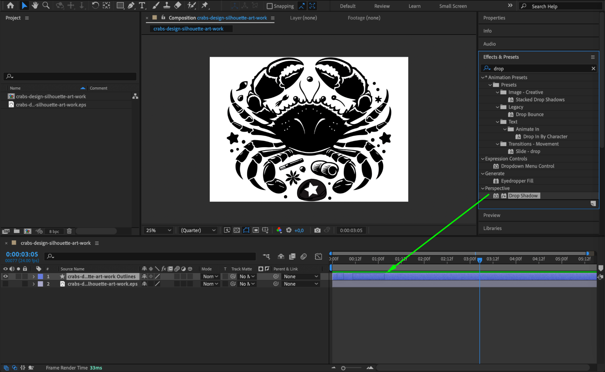 To enhance the visual appeal of your animation, use the Effects & Presets panel. Apply effects like Glow, Drop Shadow, or Gradient Ramp to give your AI design more depth and visual interest.