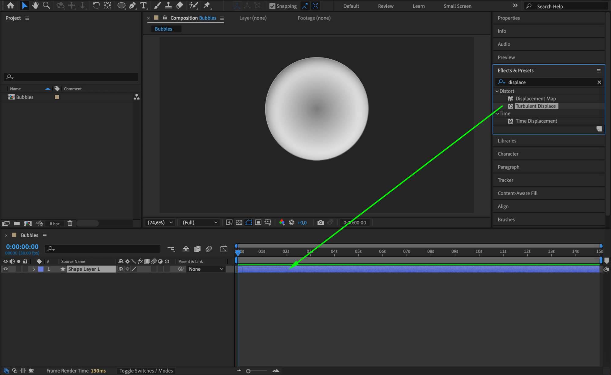 Go to Effects & Presets, search for Turbulent Displace, and apply it to the shape layer.