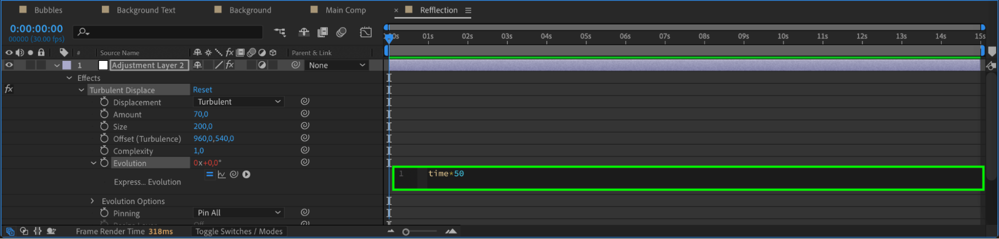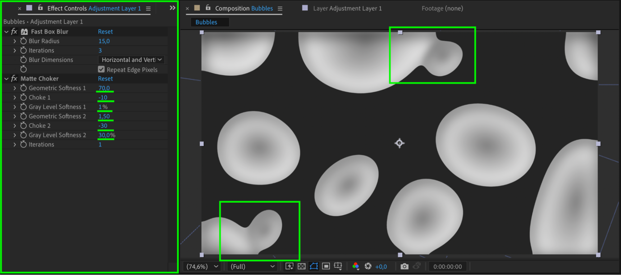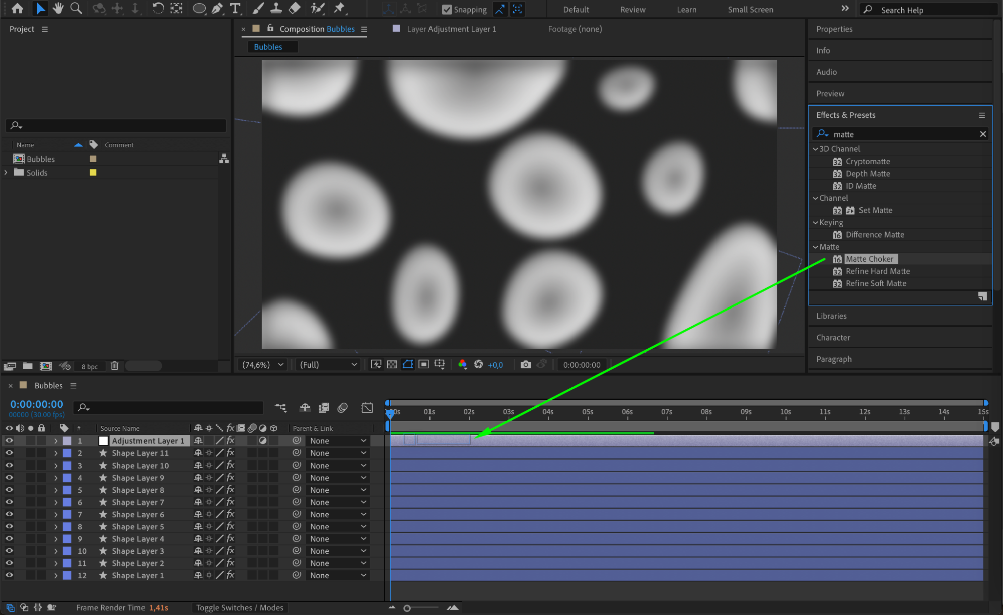 In the Track Matte Column, choose Bubbles Comp for the adjustment layer.