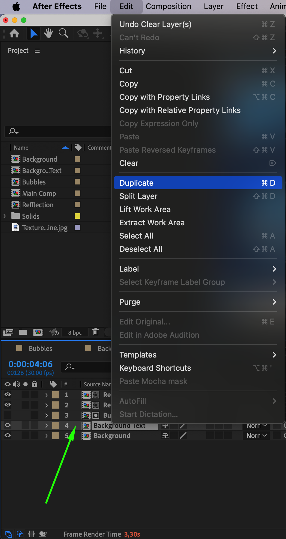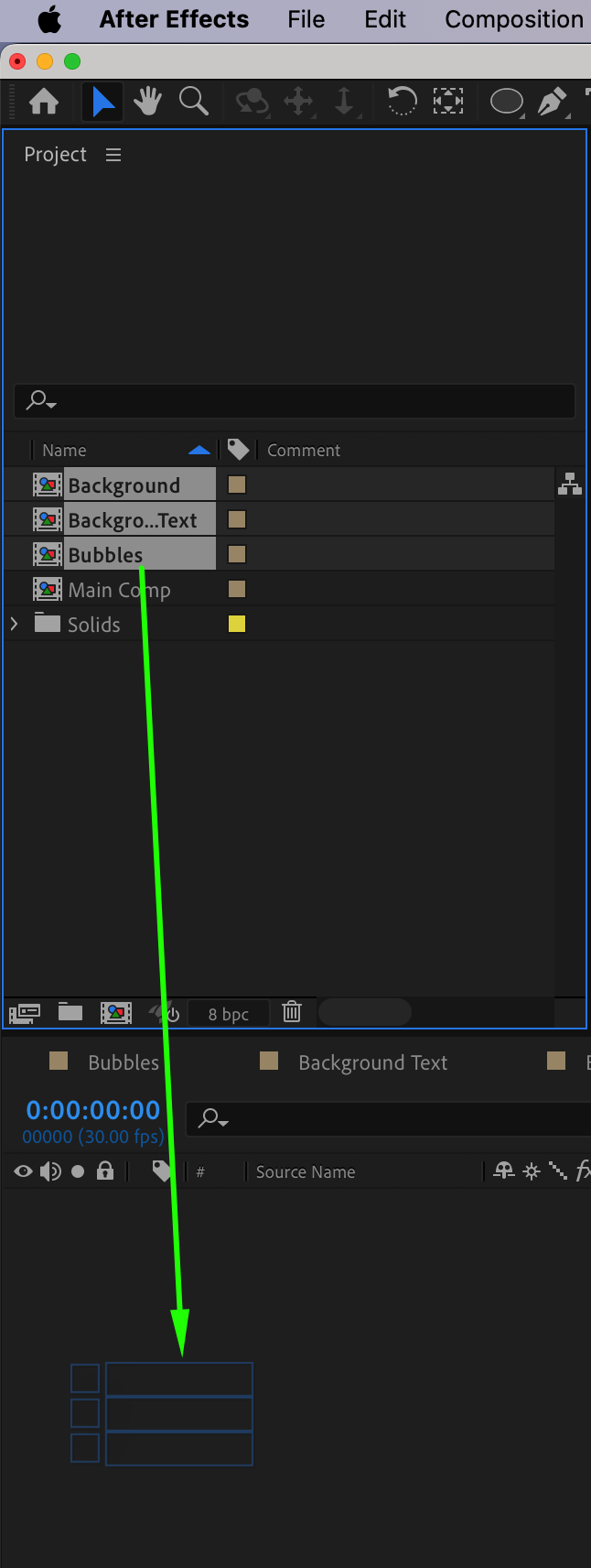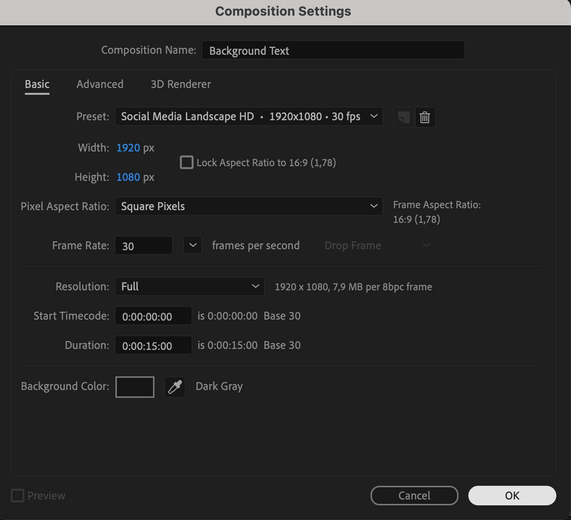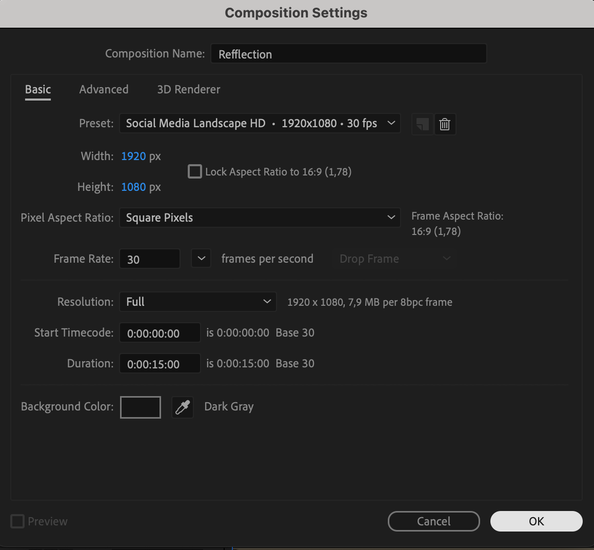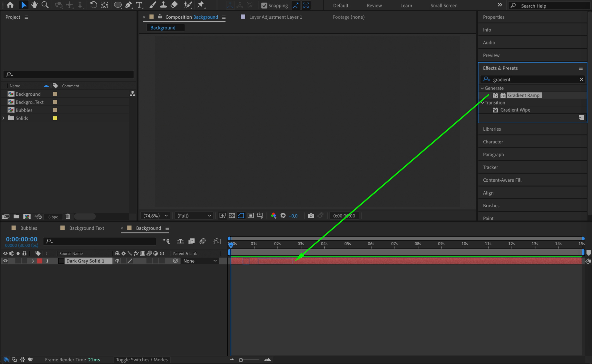 Go to Composition > New Composition, name it “Background”, and add a Solid Layer.